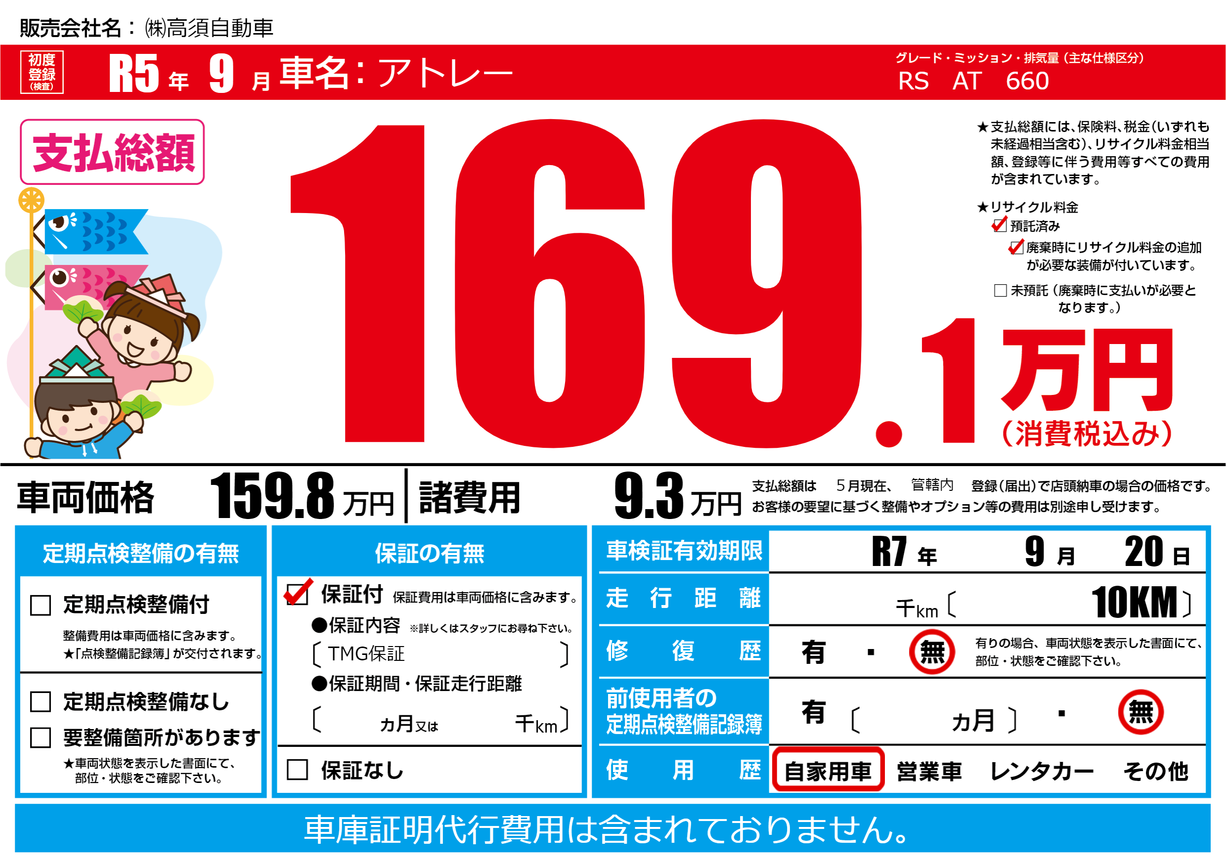 保証付き 保証内容(TMG保証) ---ヶ月または()千kmまで |