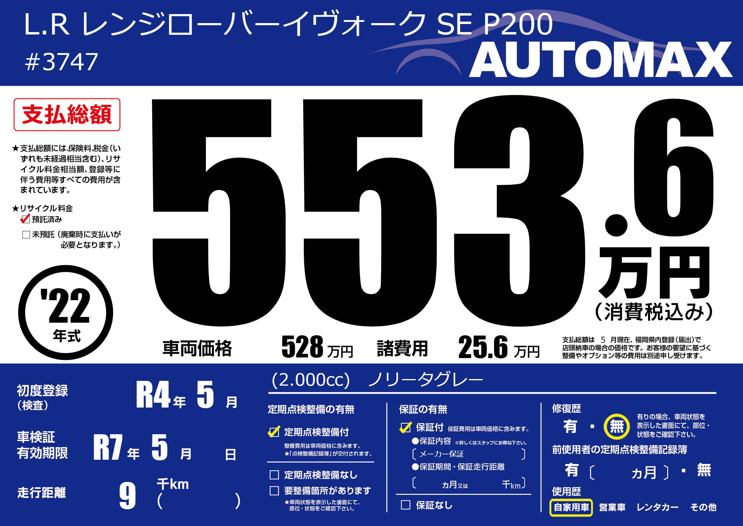 なし | 車検制限 | R7年5月---月 |