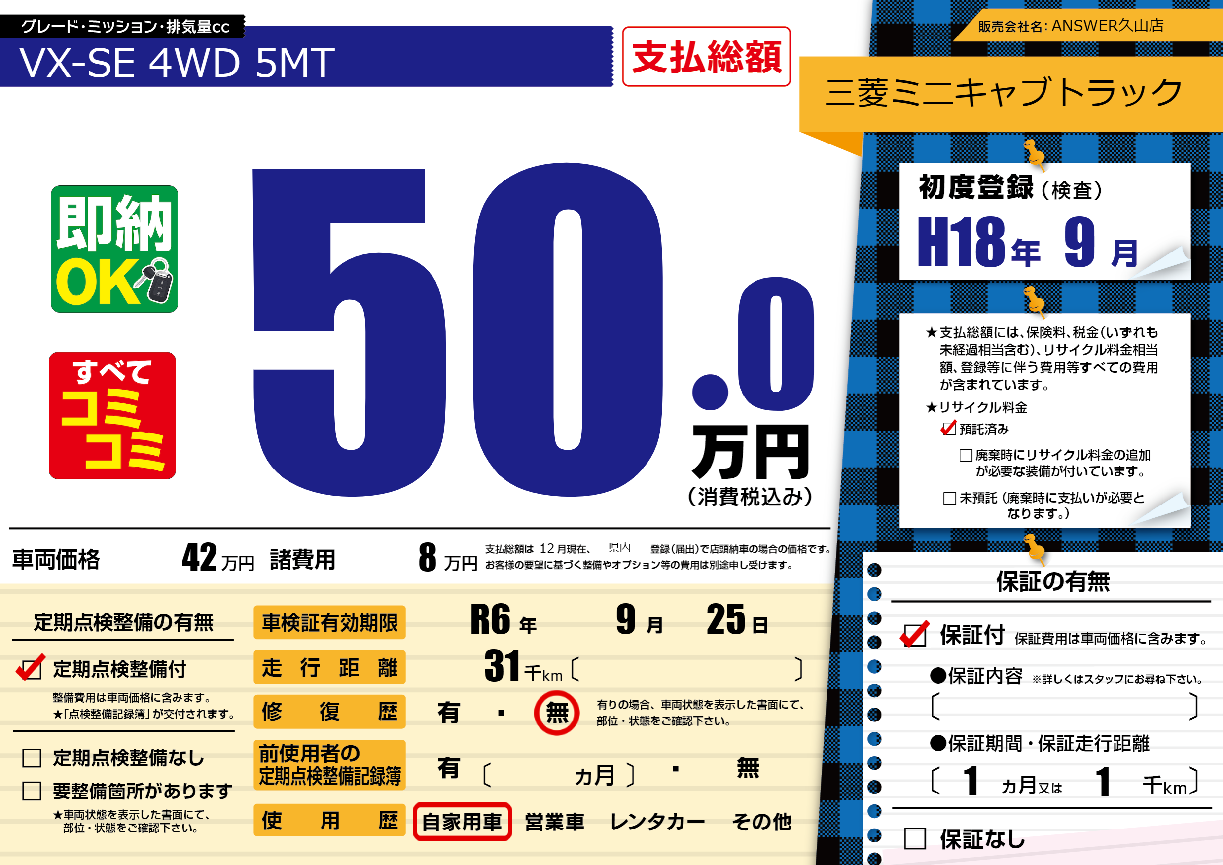 | 車検制限 | R6年 9月 25日 | ||