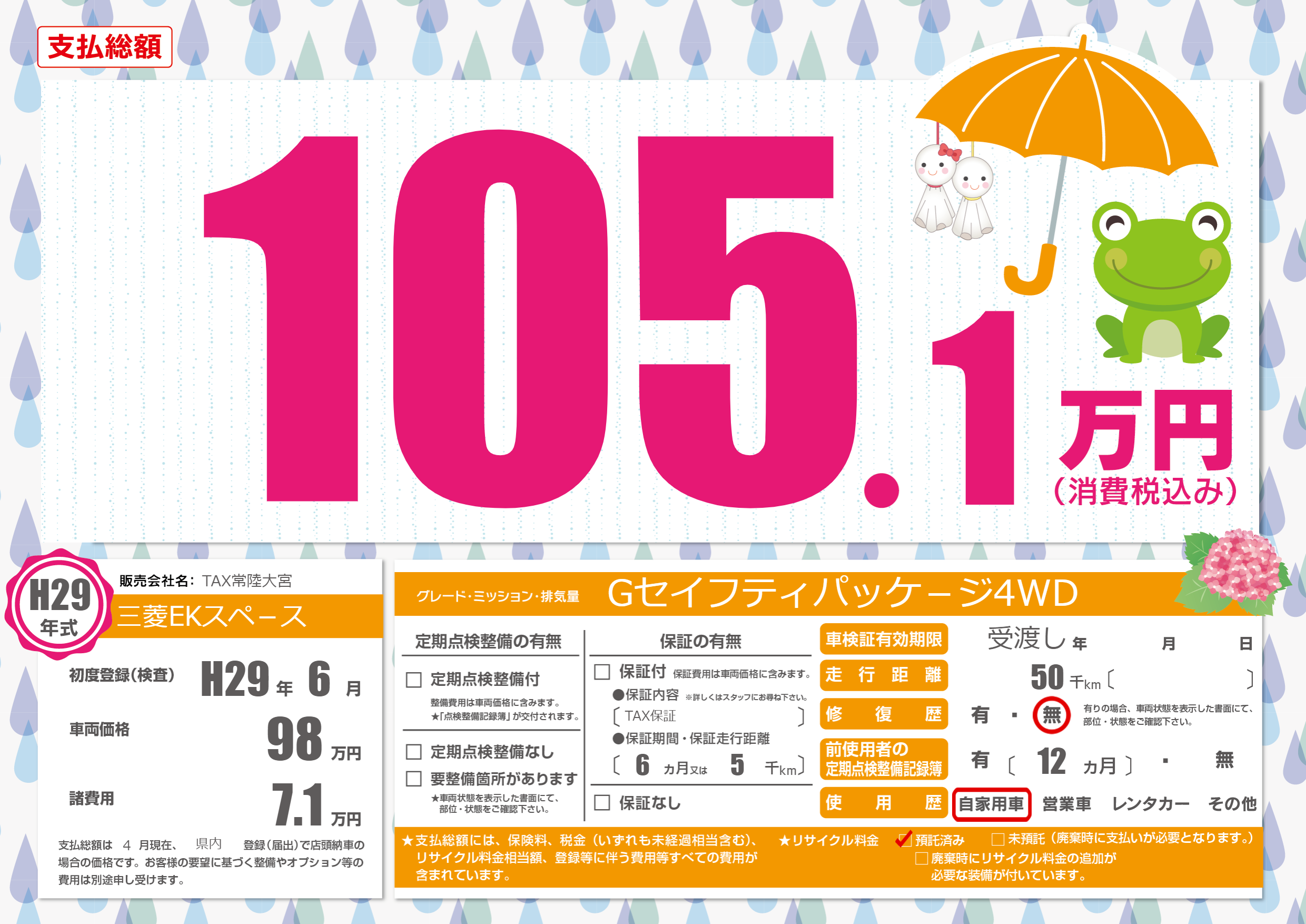 | 走行キロ | 5万km | 初年度登録 | H29年6月 |
