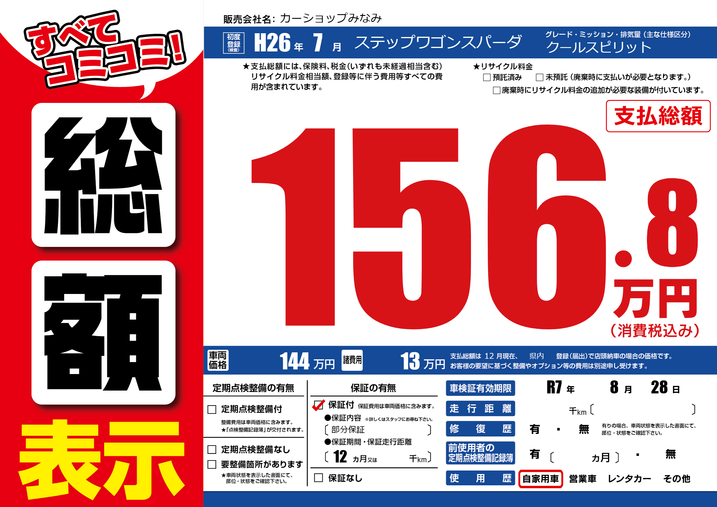 | 走行キロ | - | 初年度登録 | H26年7月 |