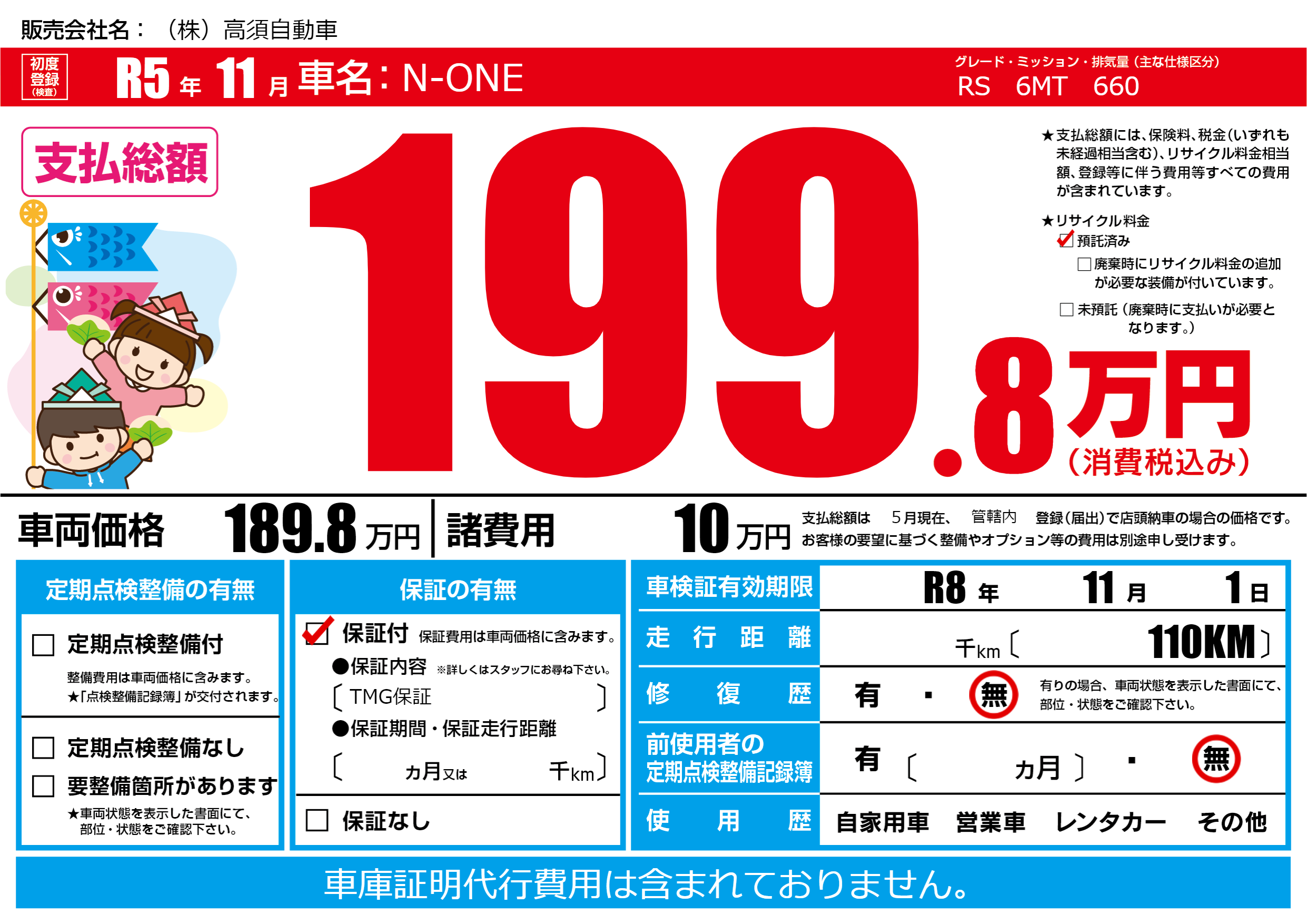 保証付き 保証内容(TMG保証) ---ヶ月または()千kmまで |