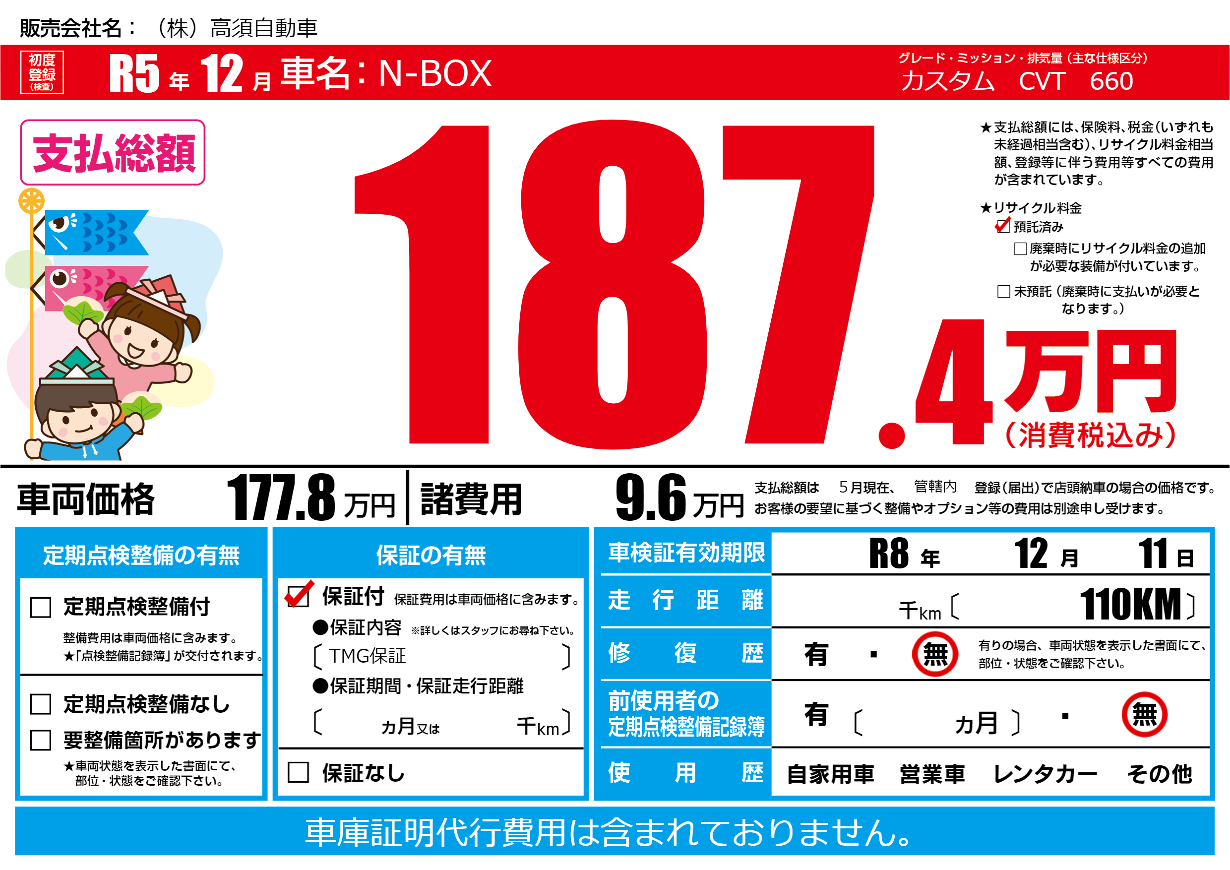 保証付き 保証内容(TMG保証) ---ヶ月または()千kmまで |