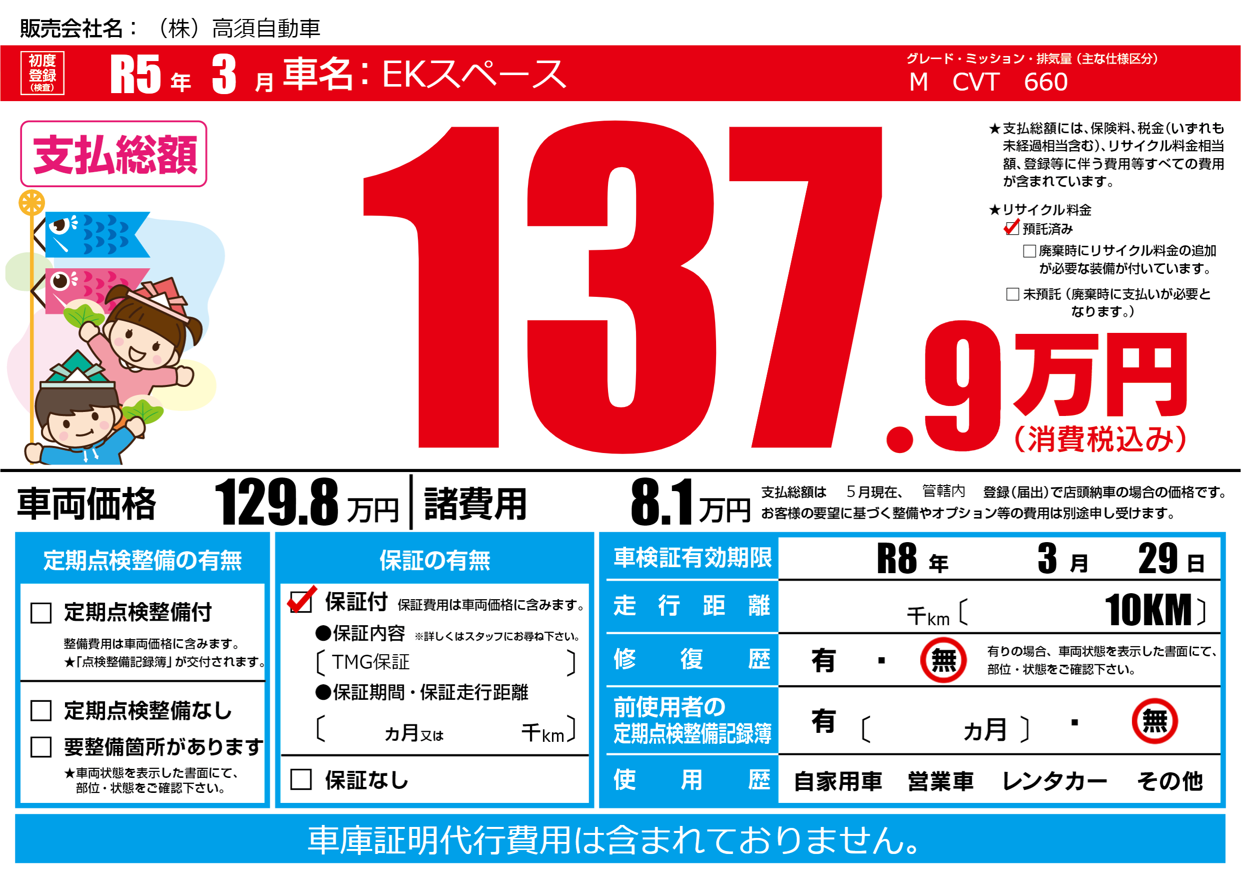| 車名 | EKスペース | グレード ミッション 排気量 |