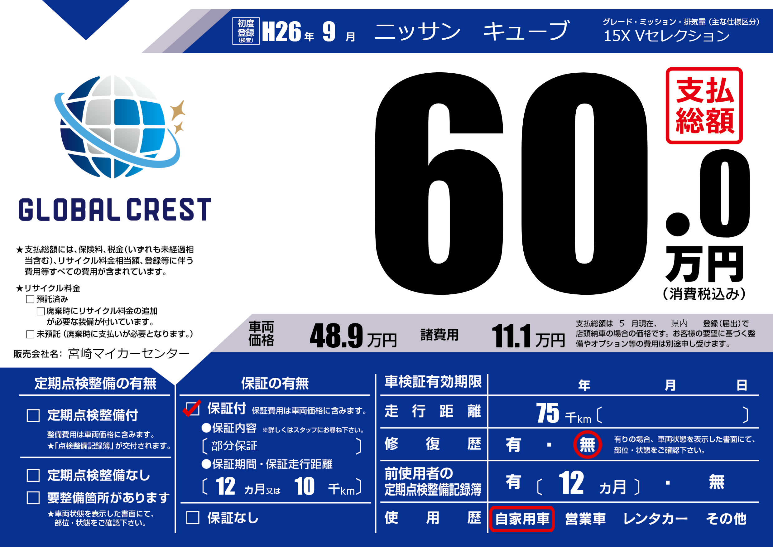 | 走行キロ | 7.5万km | ||