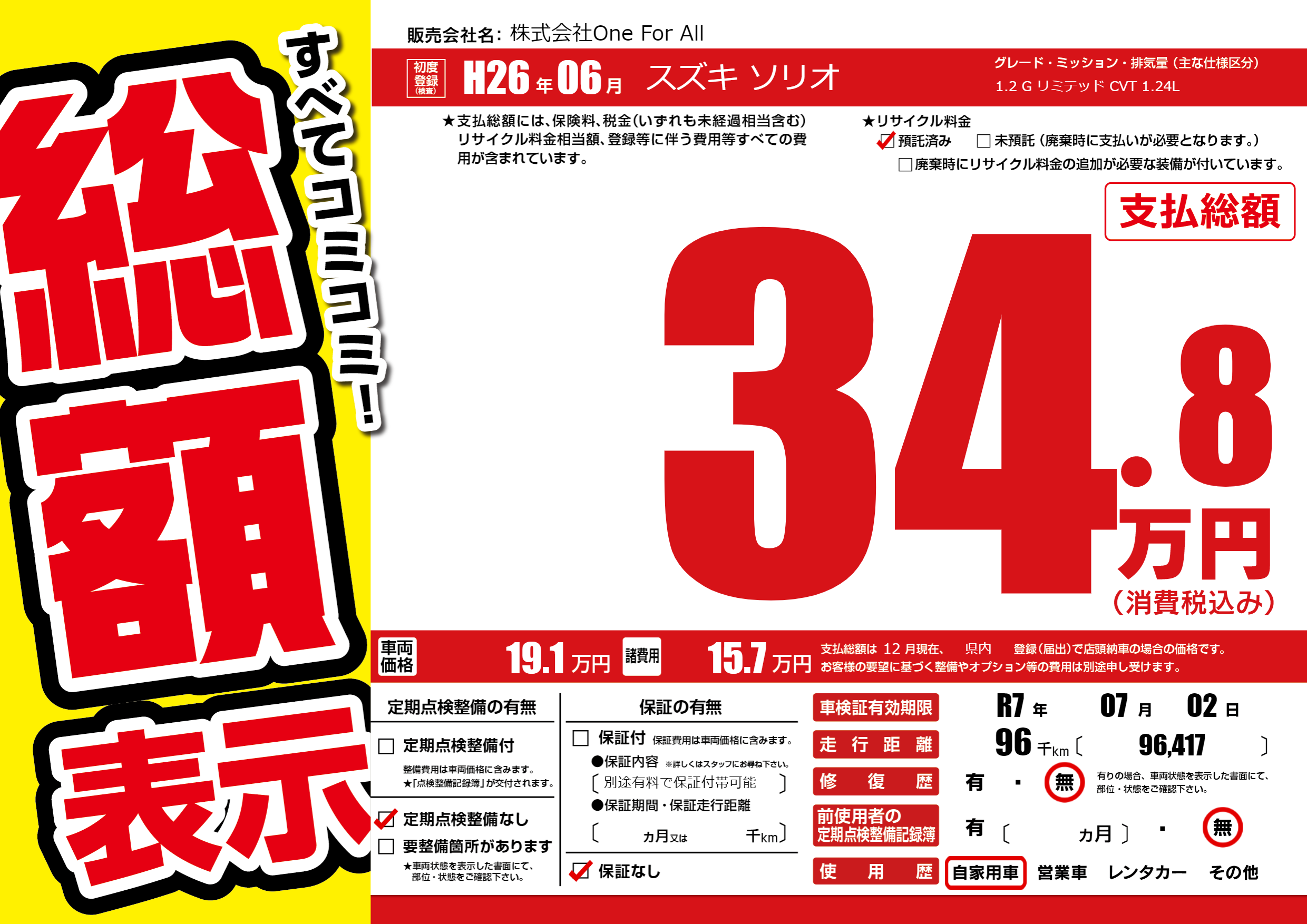 | 車検制限 | R7年 07月 02日 | ||