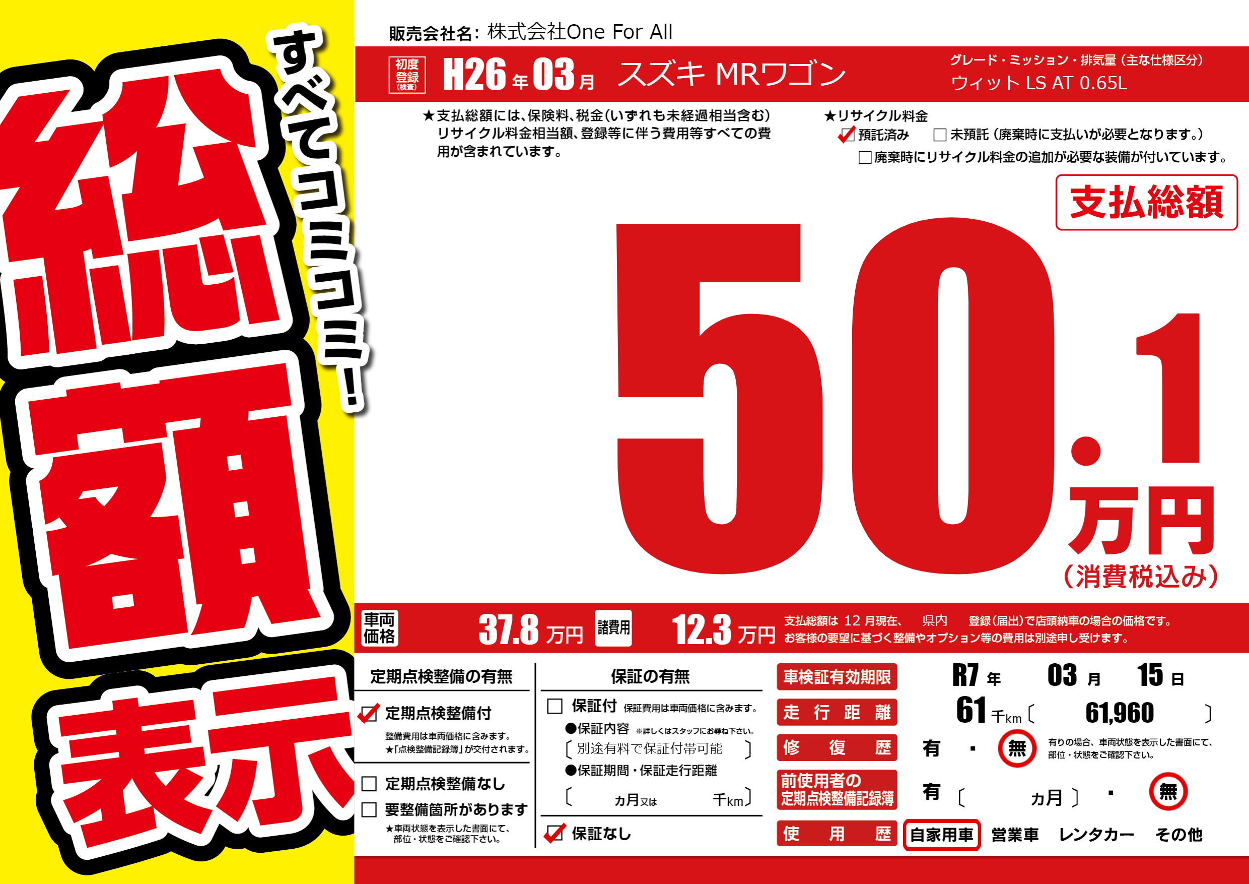 なし | 車検制限 | R7年03月15月 |