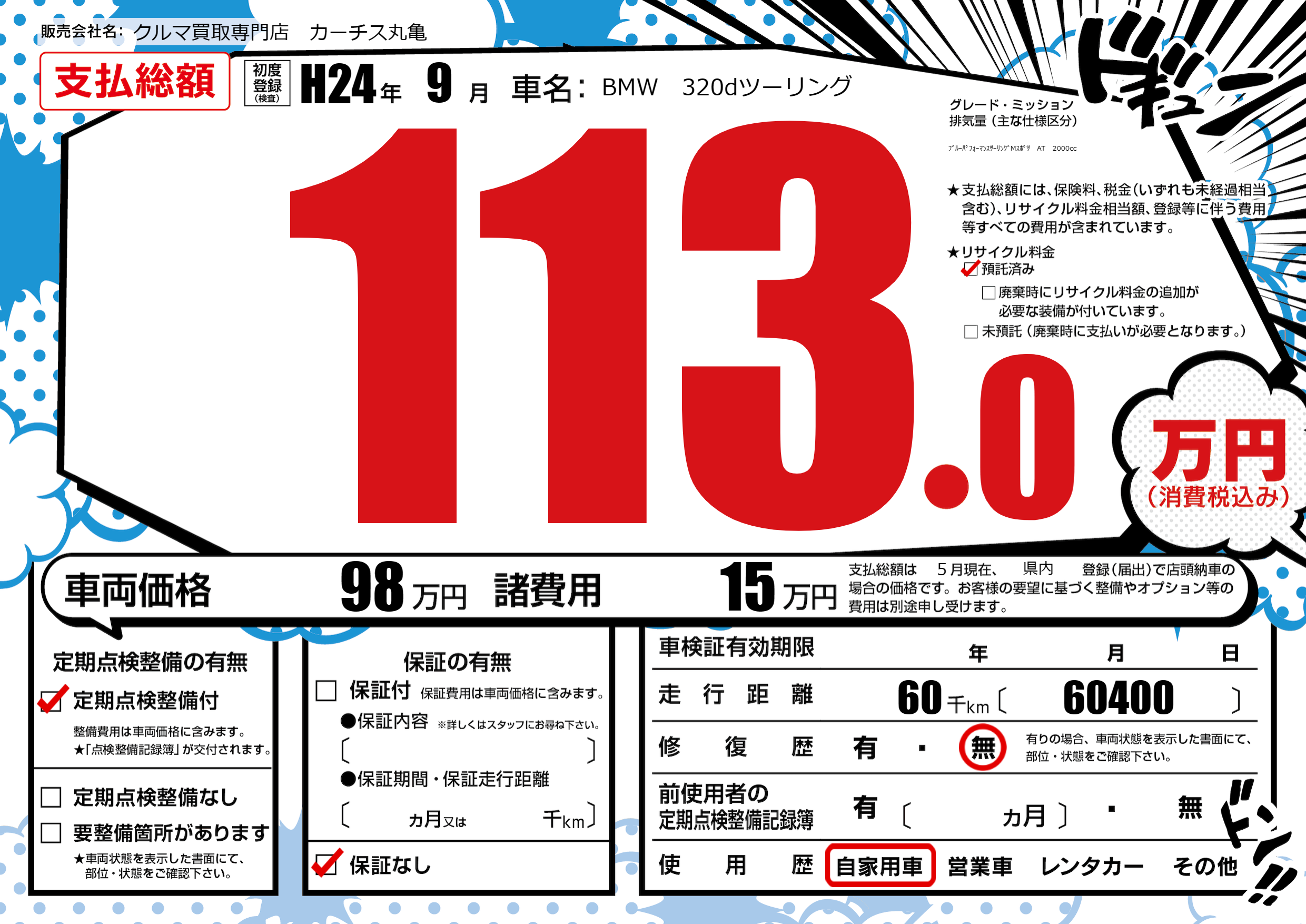 | 車名 | BMW 320dツーリング | グレード ミッション 排気量 |
