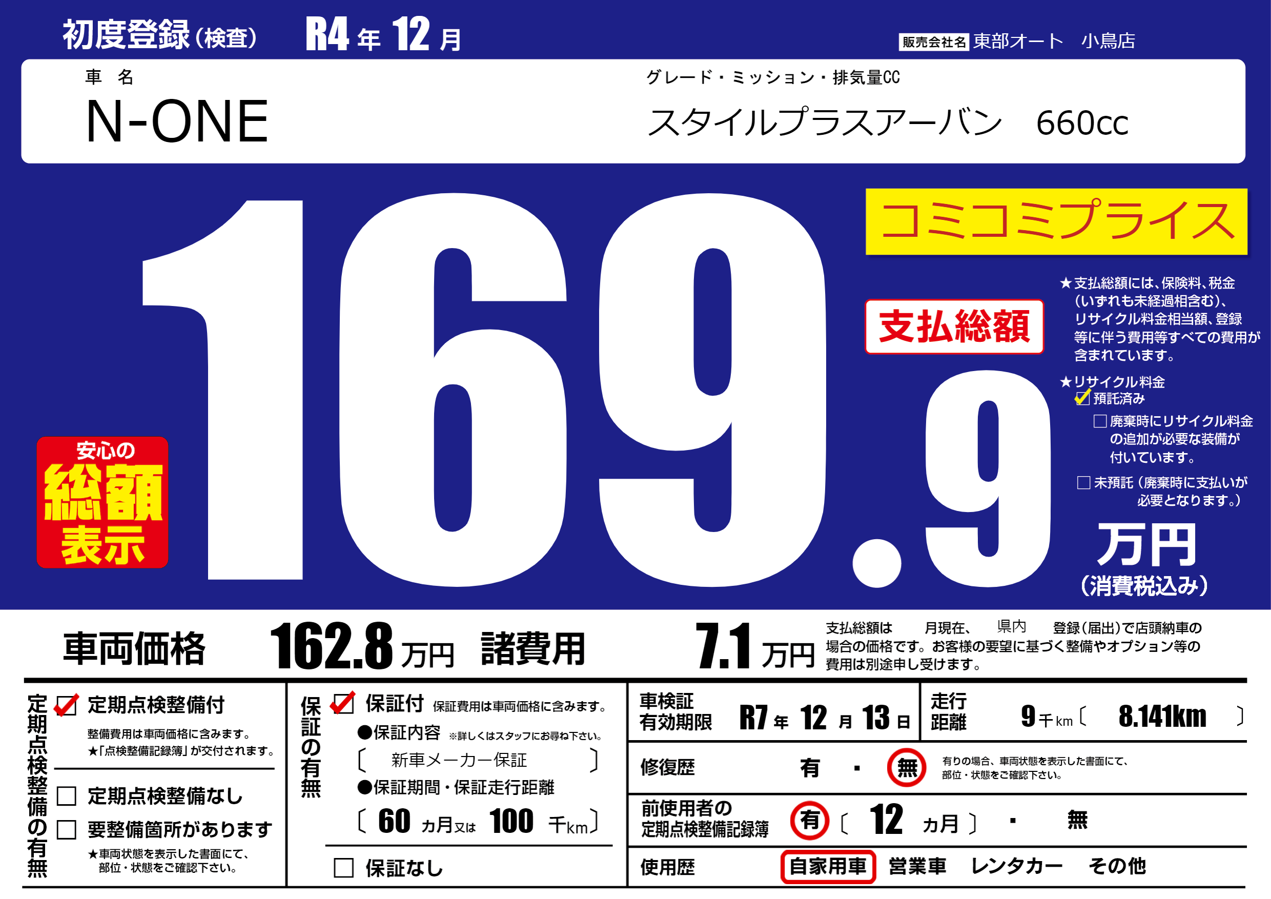 なし | 車検制限 | R7年12月13月 |