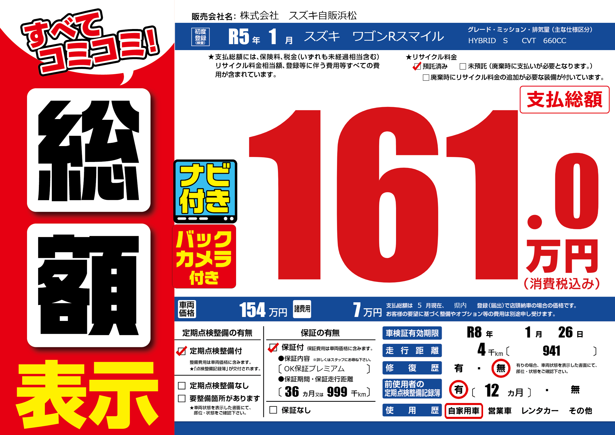 | 車名 | スズキ ワゴンRスマイル | グレード ミッション 排気量 |