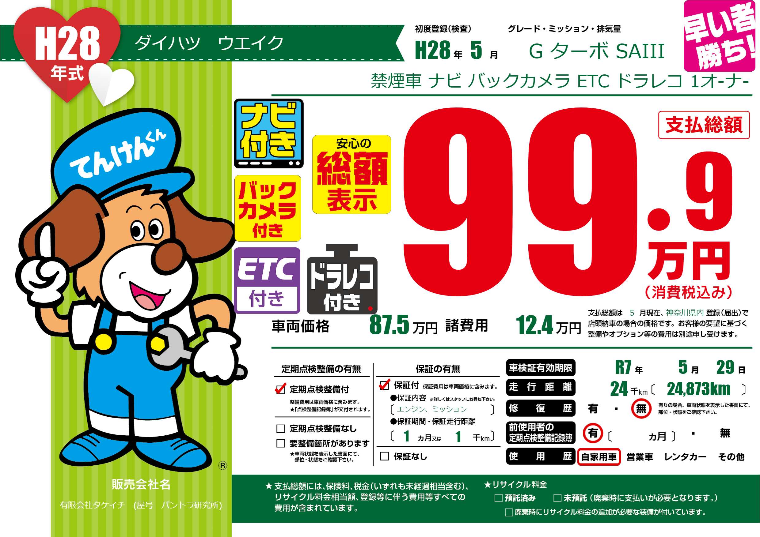 | 車名 | ダイハツ ウエイク | グレード ミッション 排気量 |