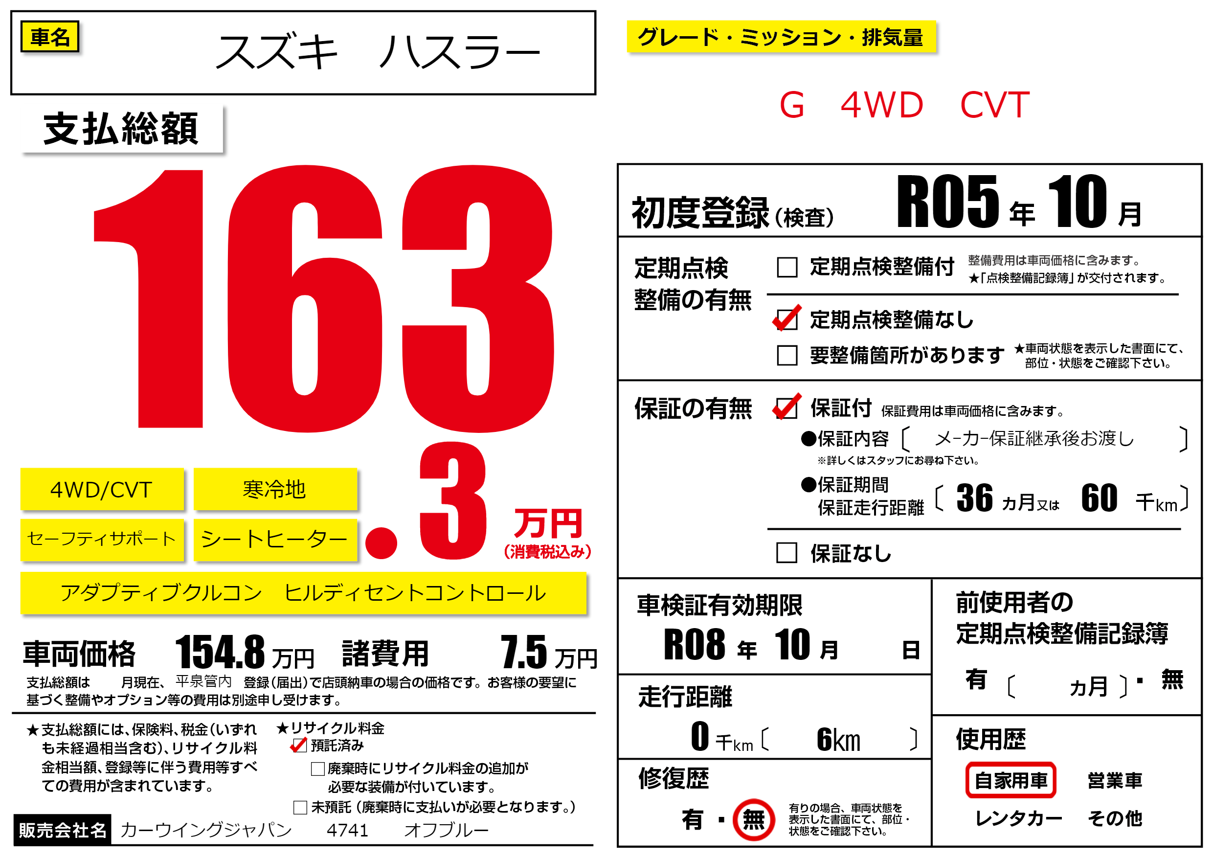 | 車検制限 | R08年 10月 - 日 | ||
