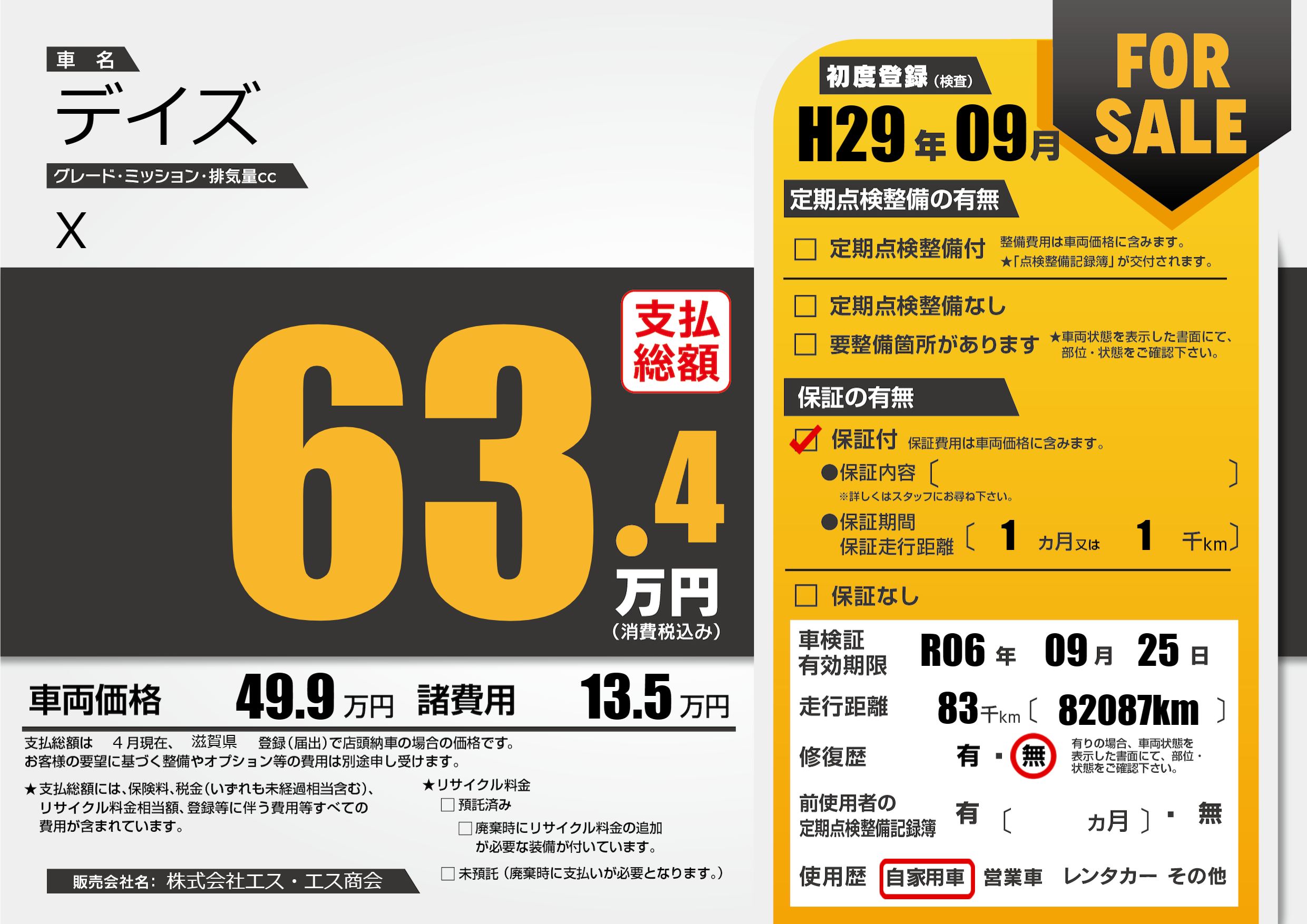 | 車検制限 | R06年 09月 25日 | ||