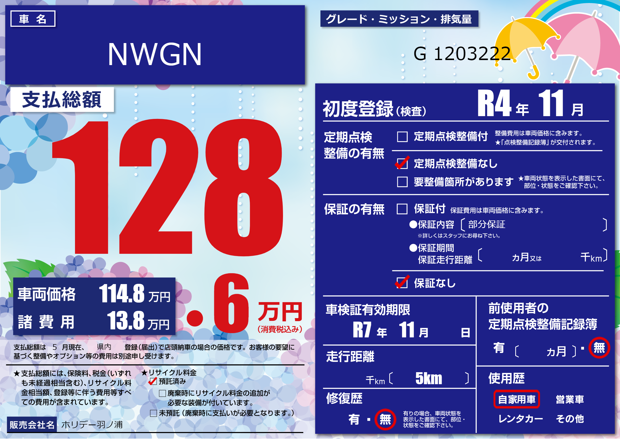 | 車検制限 | R7年 11月 - 日 | ||