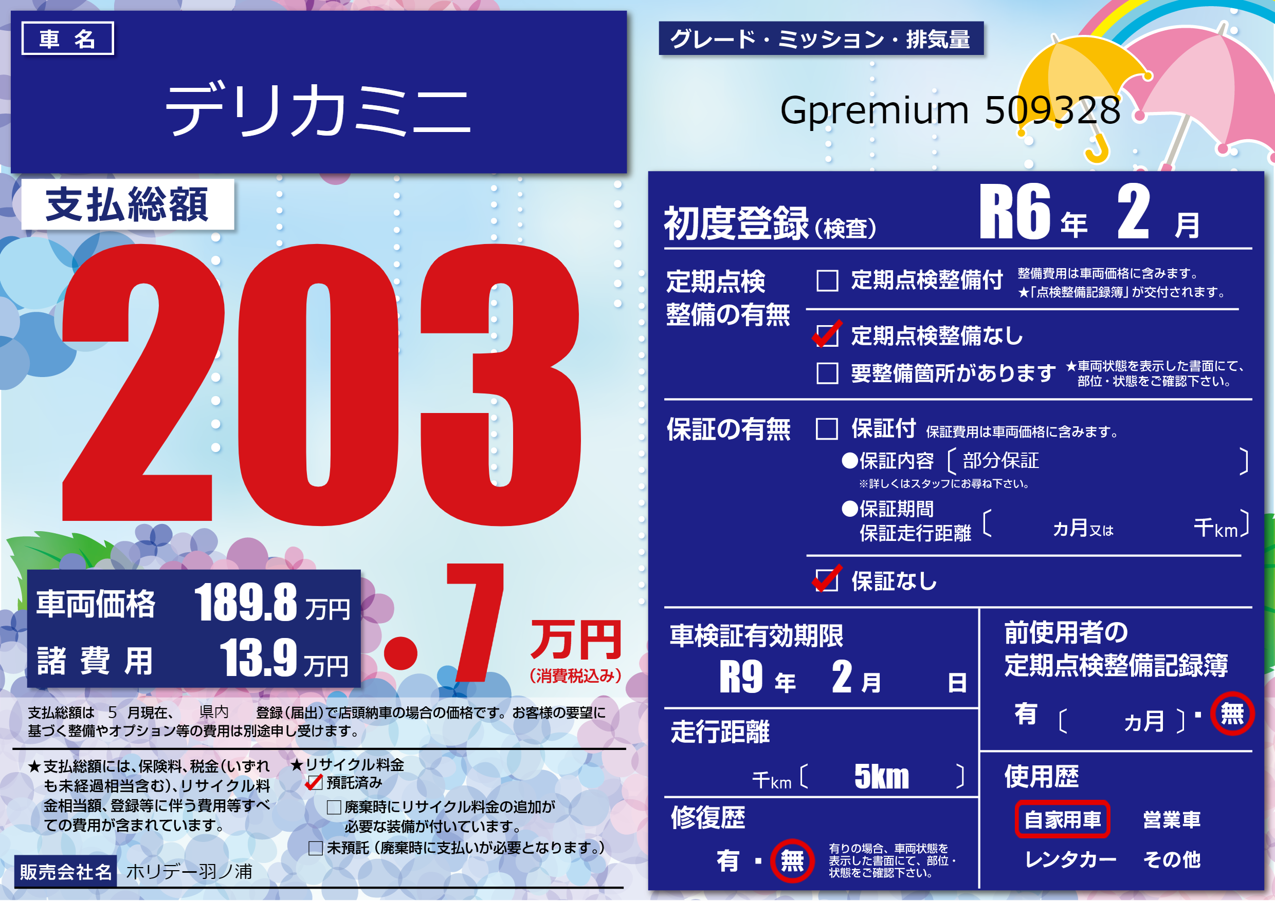 なし | 車検制限 | R9年2月---月 |