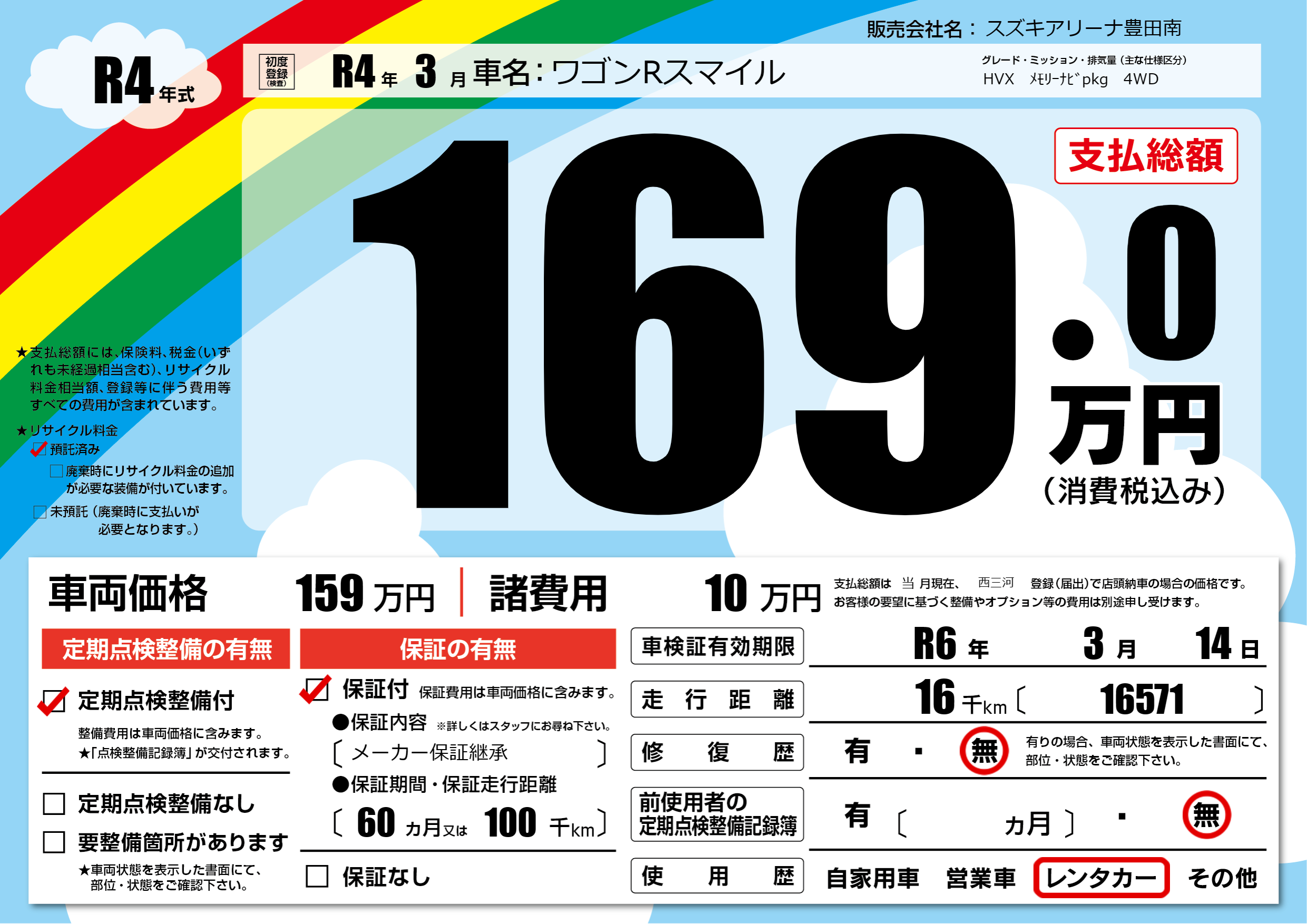 | 車名 | ワゴンRスマイル | グレード ミッション 排気量 |