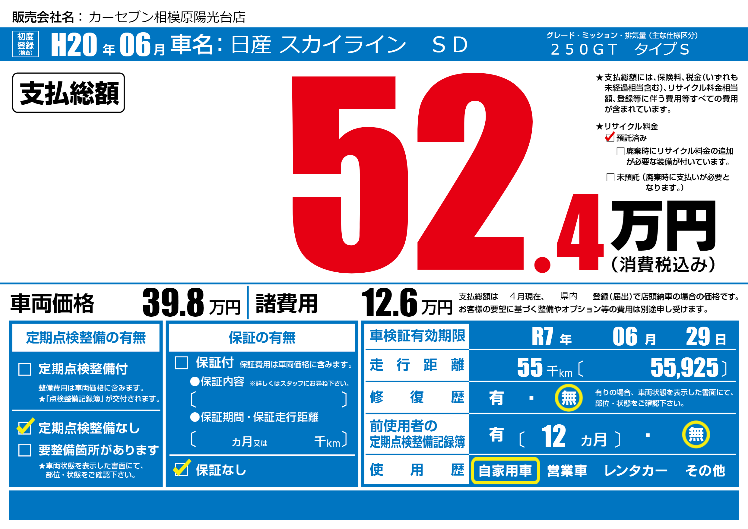 | 車検制限 | R7年 06月 29日 | ||