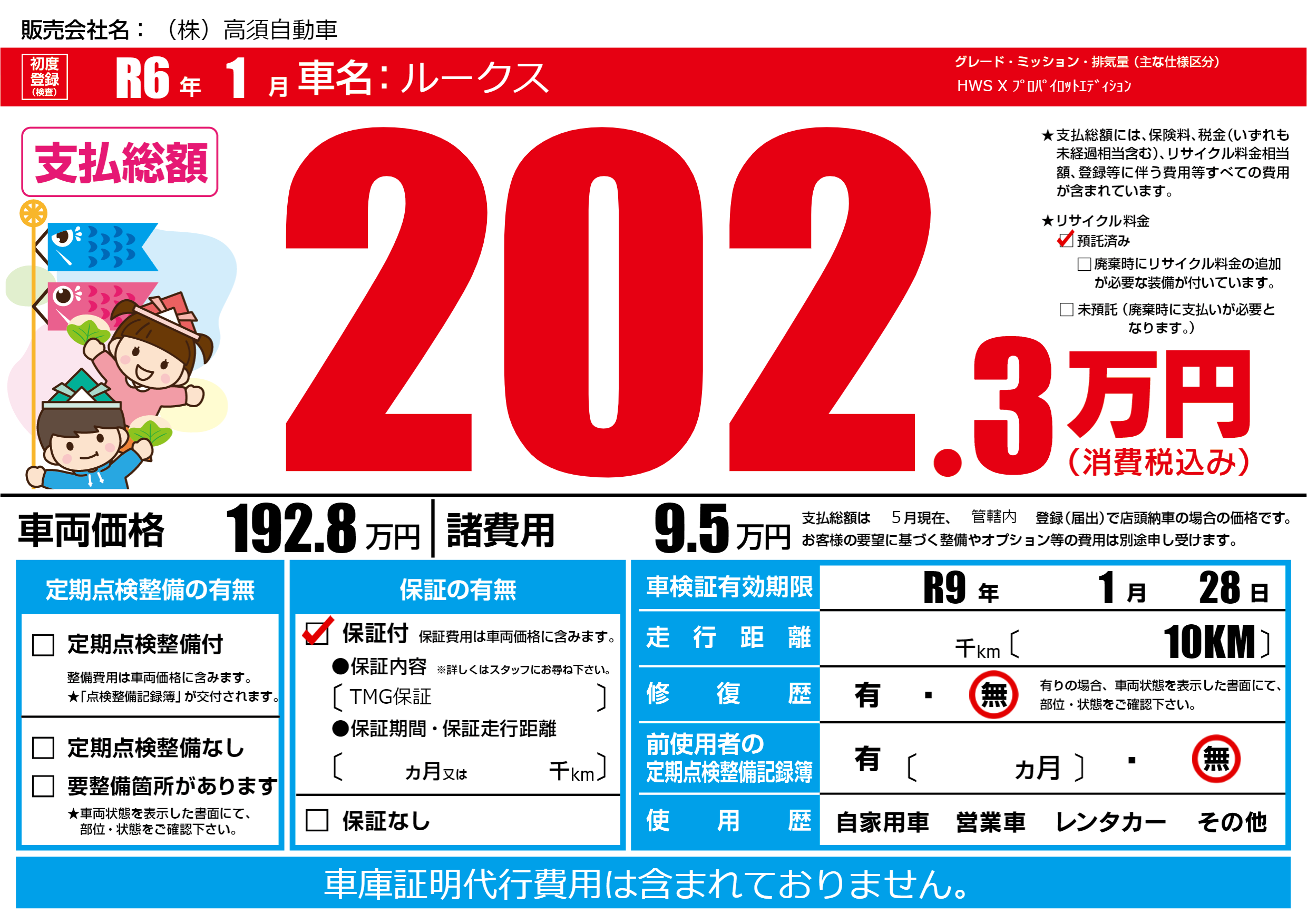 なし | 車検制限 | R9年1月28月 |