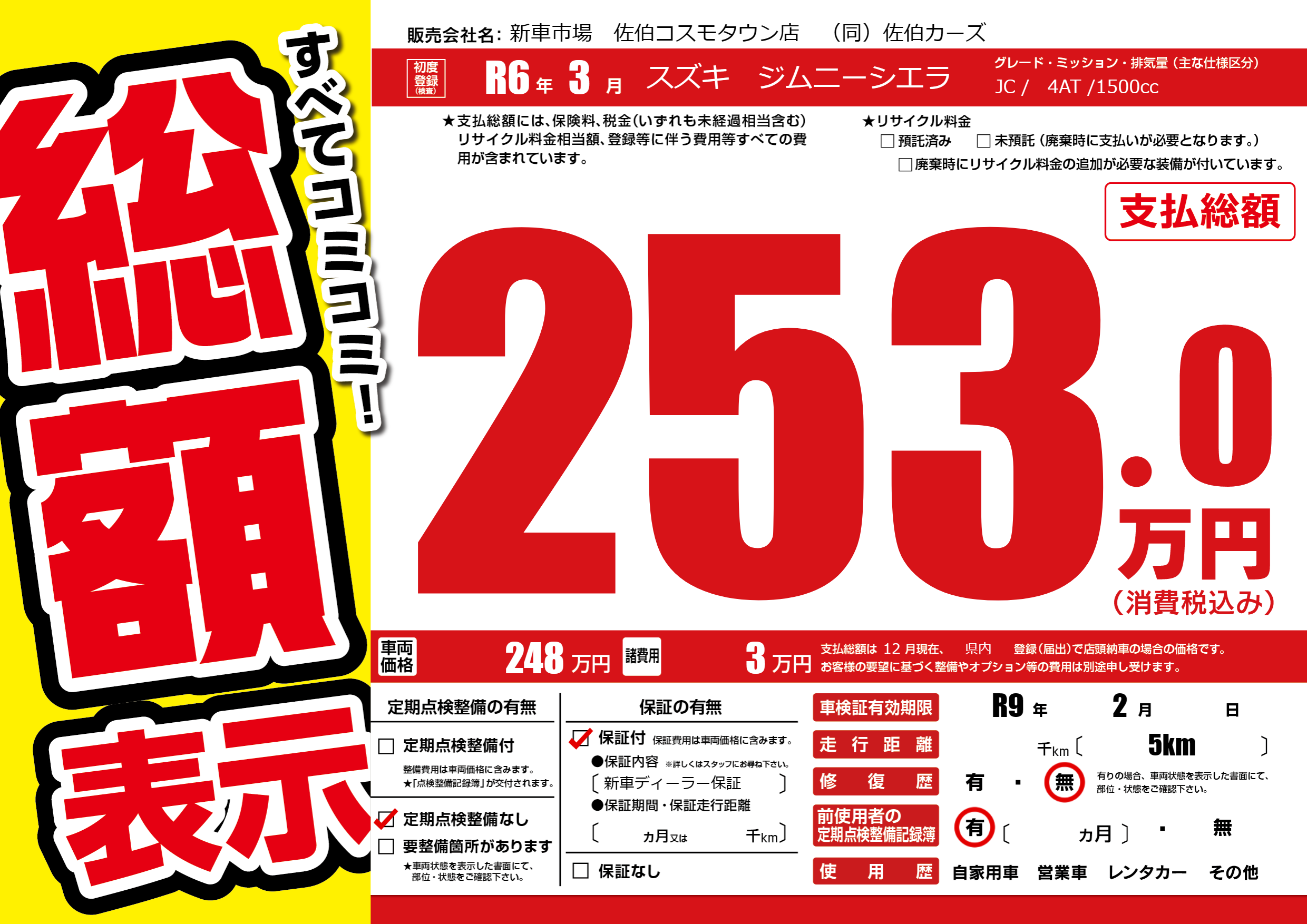 | 車名 | スズキ ジムニーシエラ | グレード ミッション 排気量 |