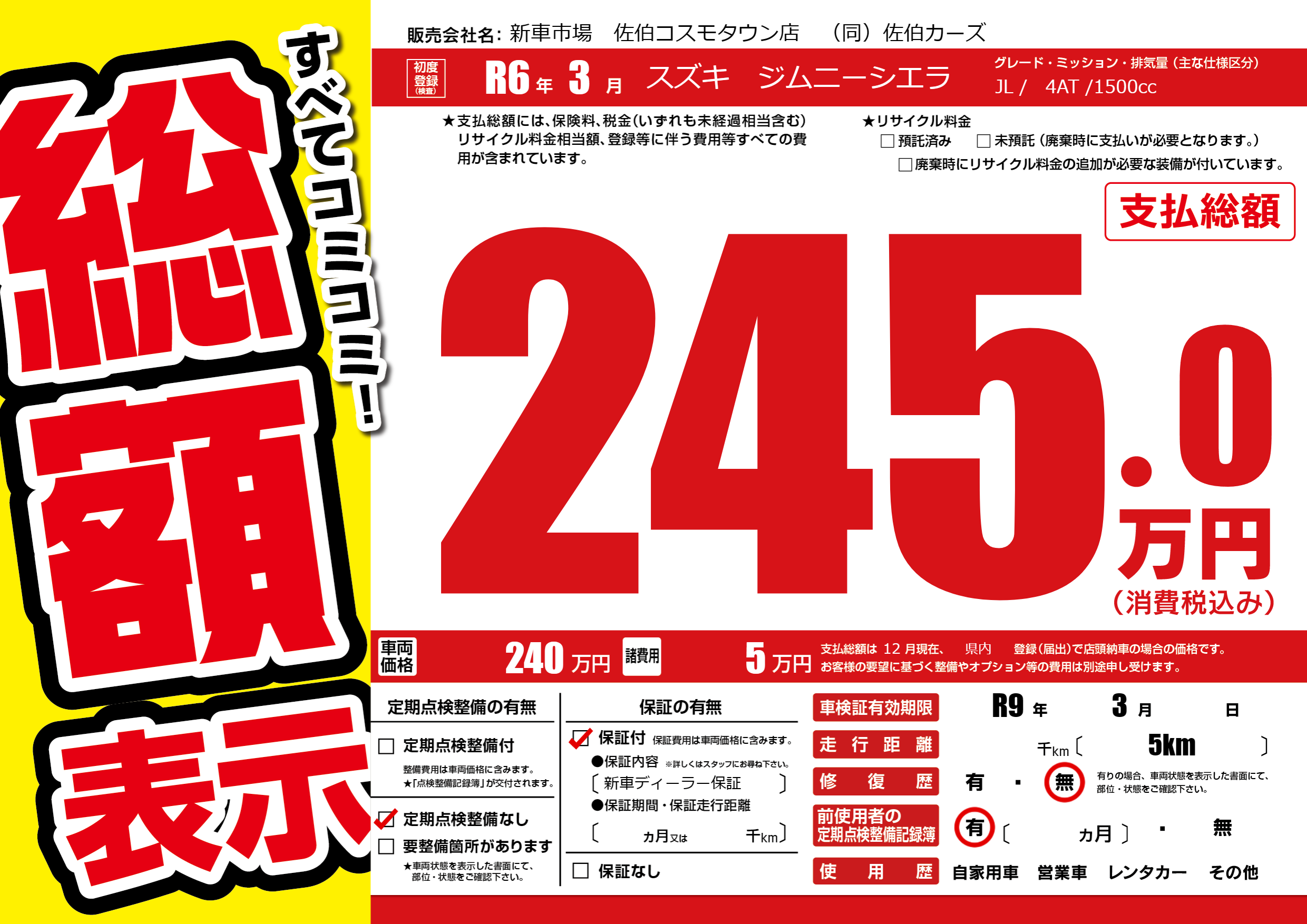 | 走行キロ | - | 初年度登録 | R6年3月 |