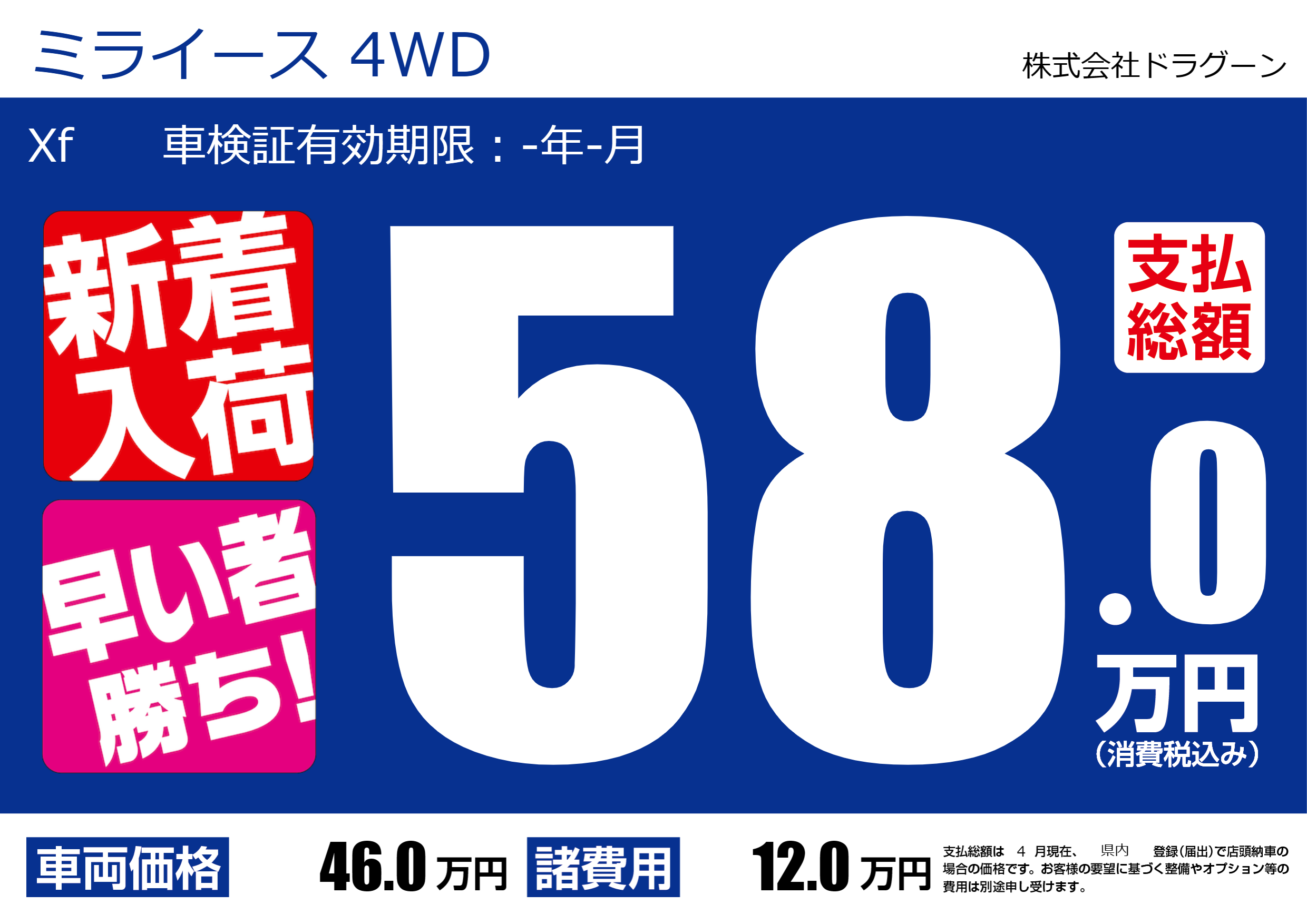 | 車名 | ミライース 4WD | グレード ミッション 排気量 |