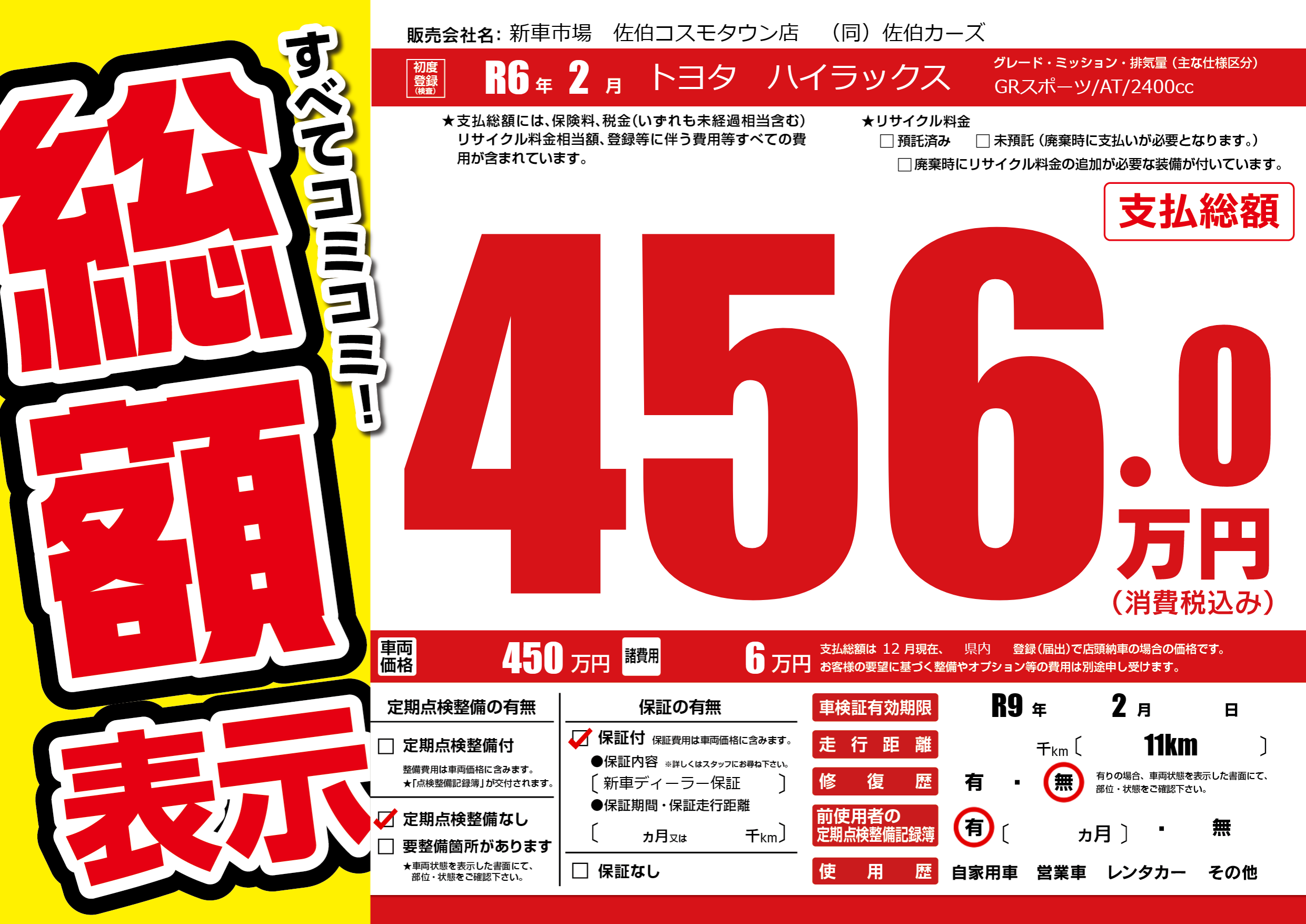 | 車名 | トヨタ ハイラックス | グレード ミッション 排気量 |