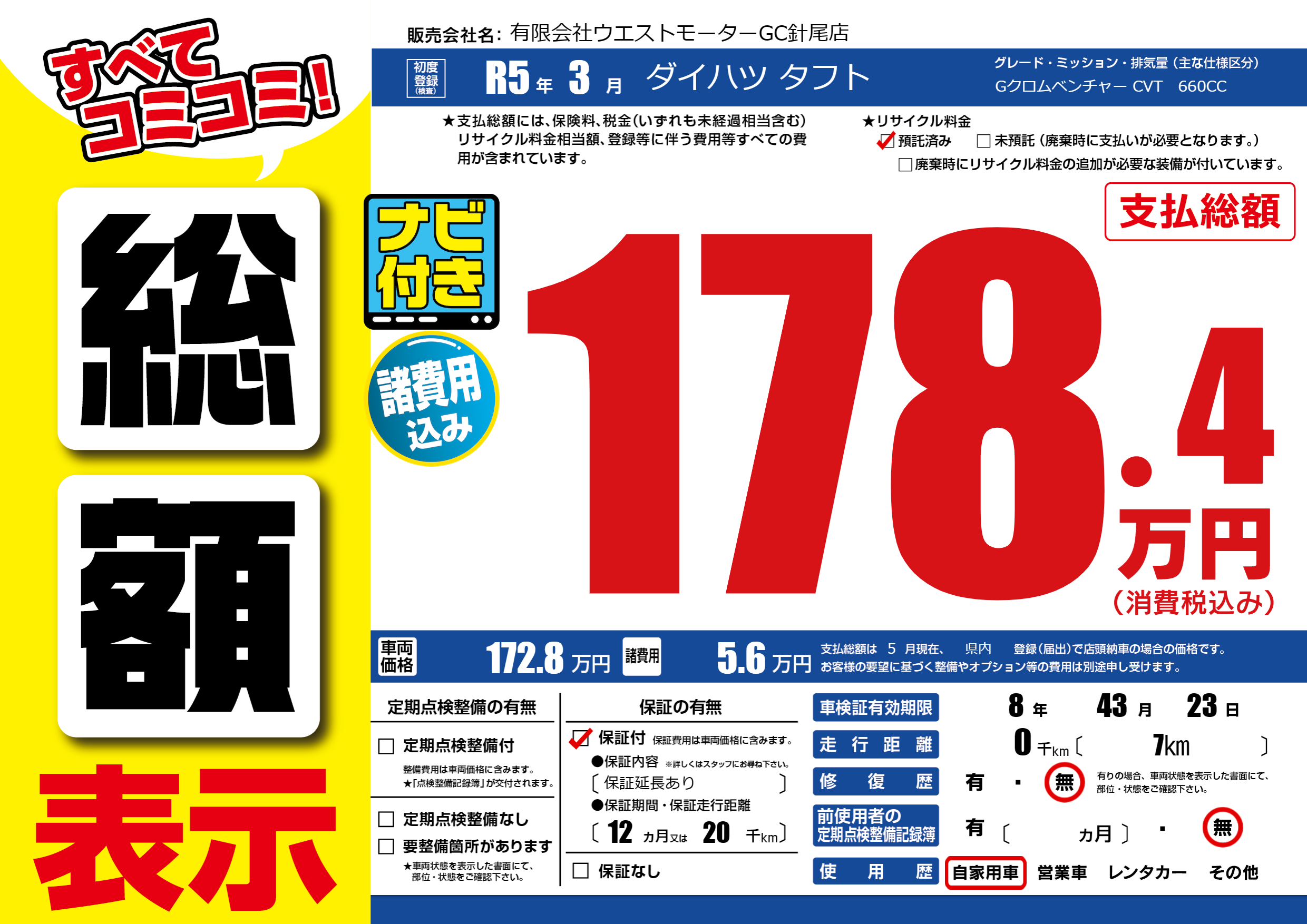| 走行キロ | - | 初年度登録 | R5年3月 |