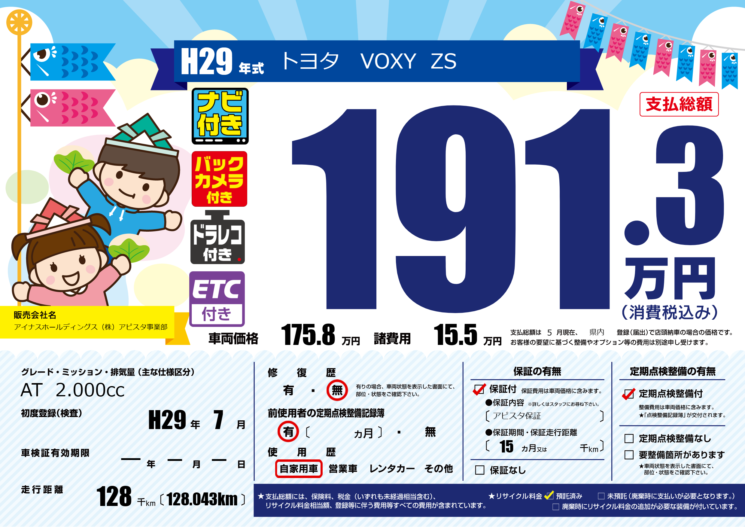 | 走行キロ | 12.8万km | 初年度登録 | H29年7月 |