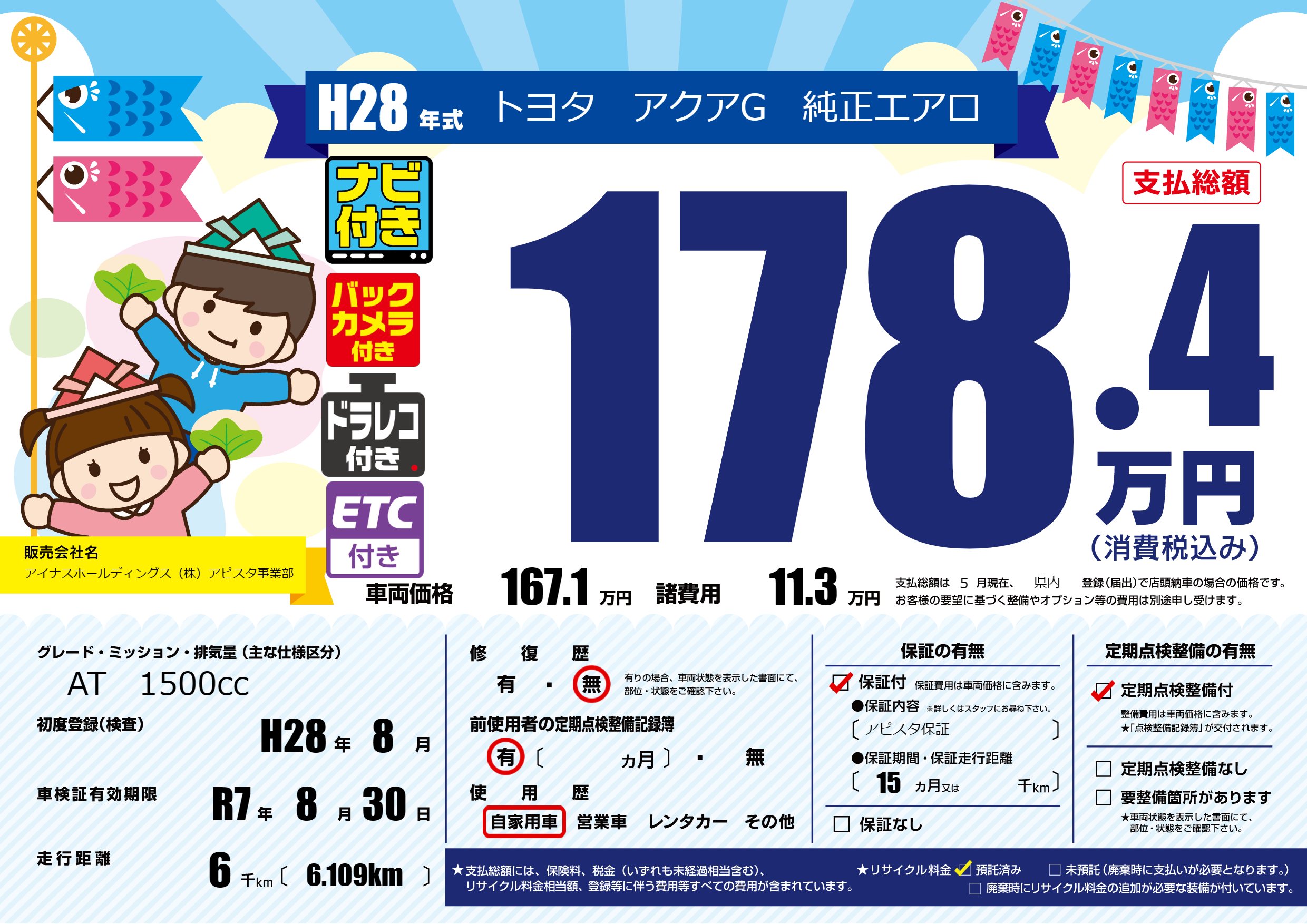 保証付き 保証内容(アピスタ保証) 15ヶ月または千km |