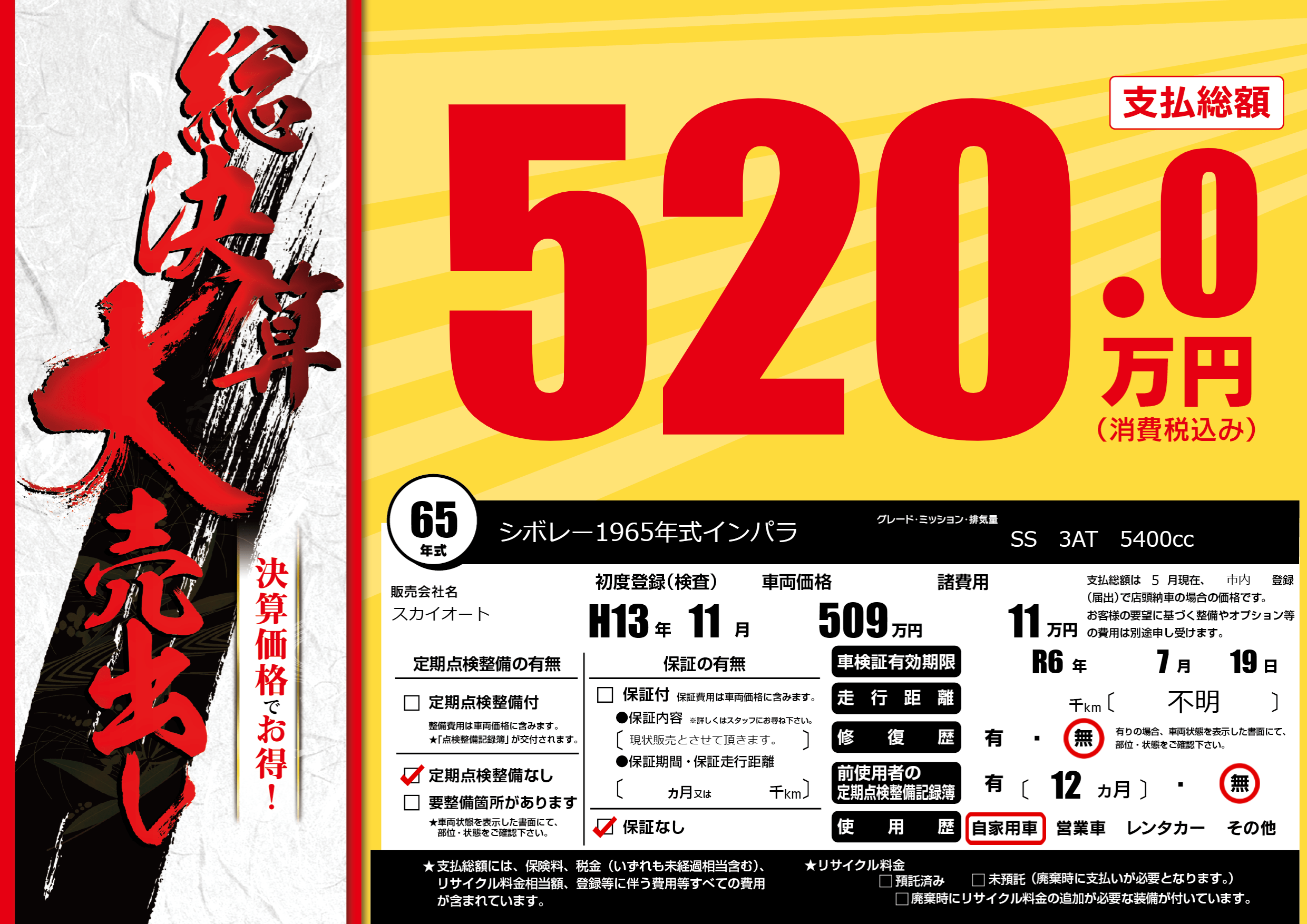 | 車名 | シボレー1965年式インパラ | グレード ミッション 排気量 |