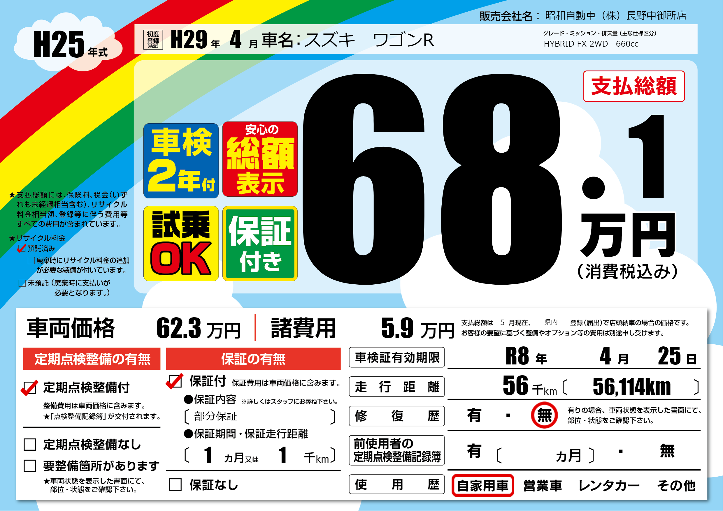 なし | 車検制限 | R8年4月25月 |