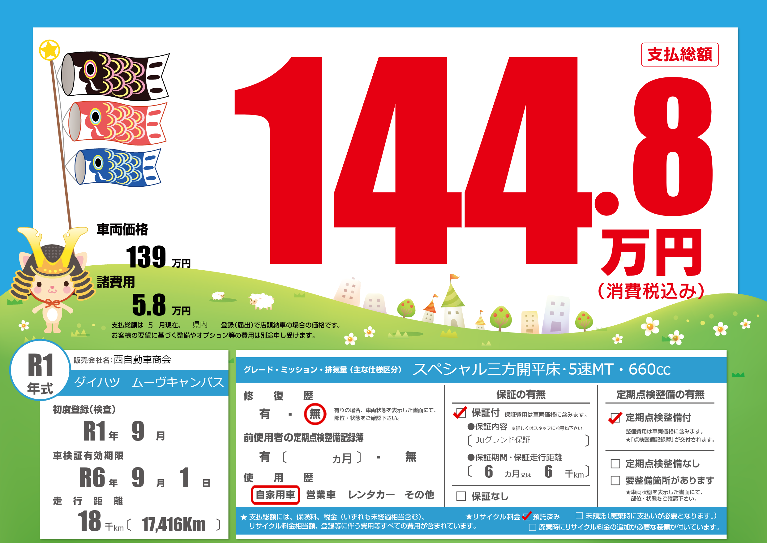 | 車検制限 | R6年 9月 1日 | ||