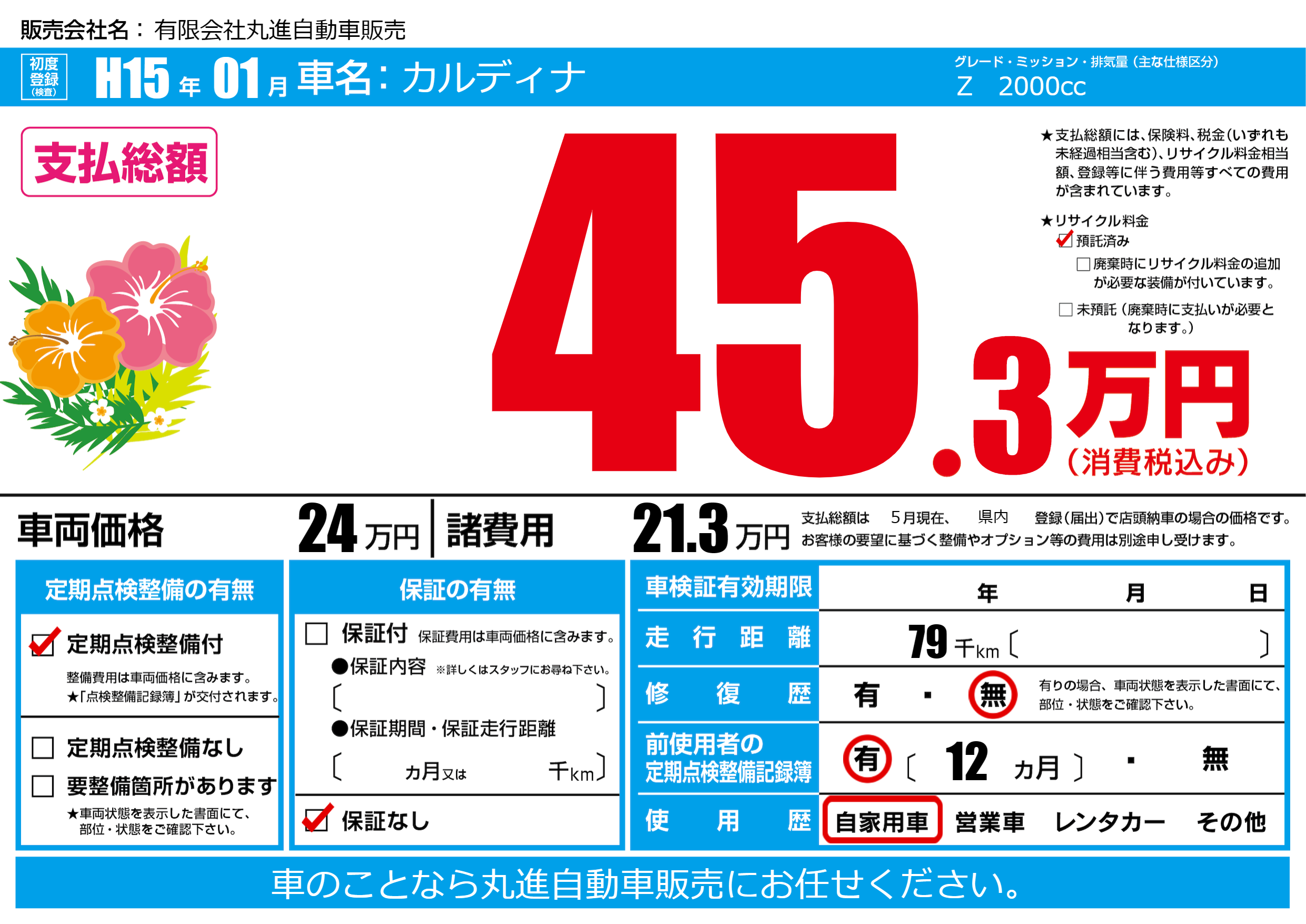 | 車名 | カルディナ | グレード ミッション 排気量 |