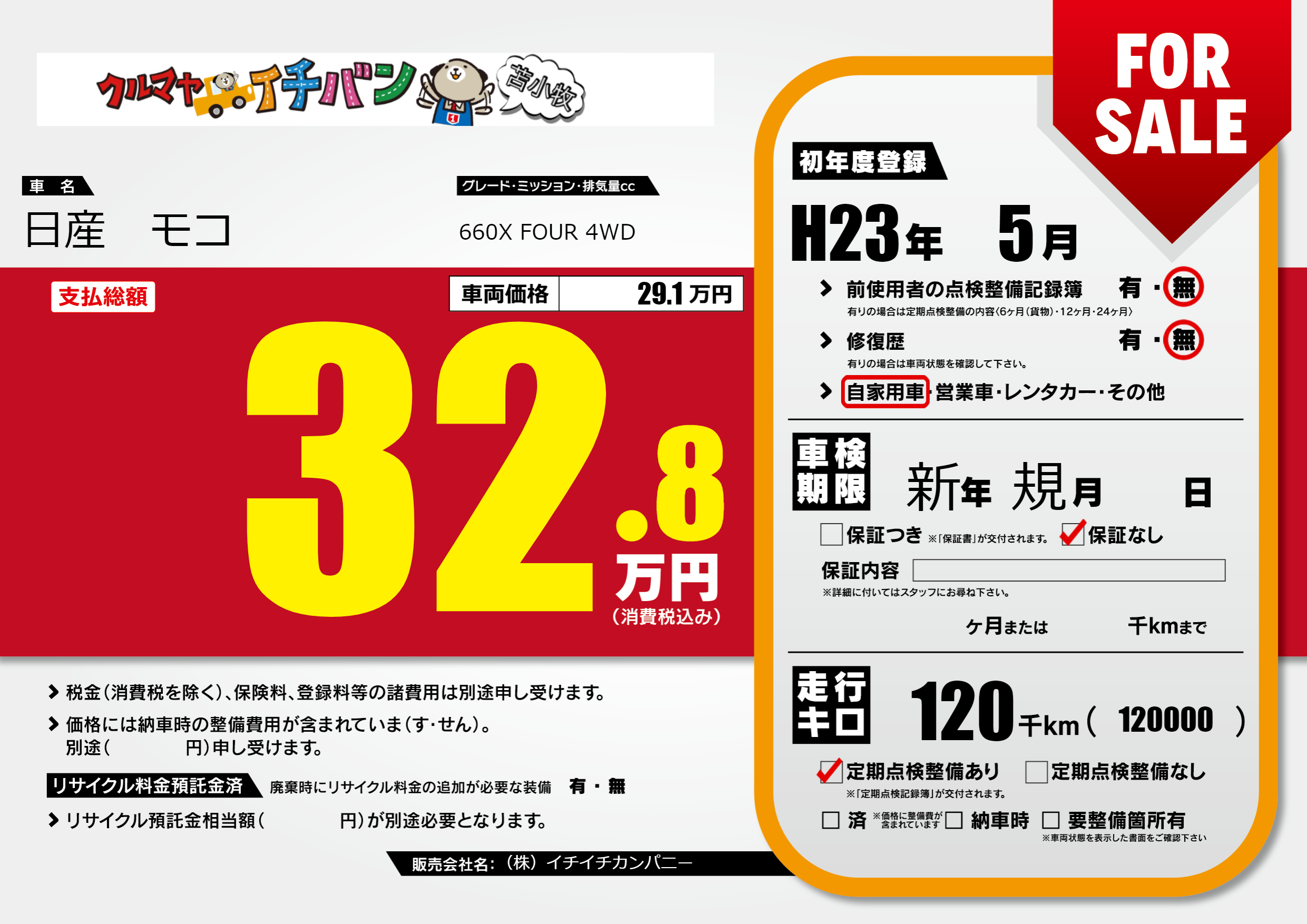 | 車名 | 日産 モコ | グレード ミッション 排気量 |
