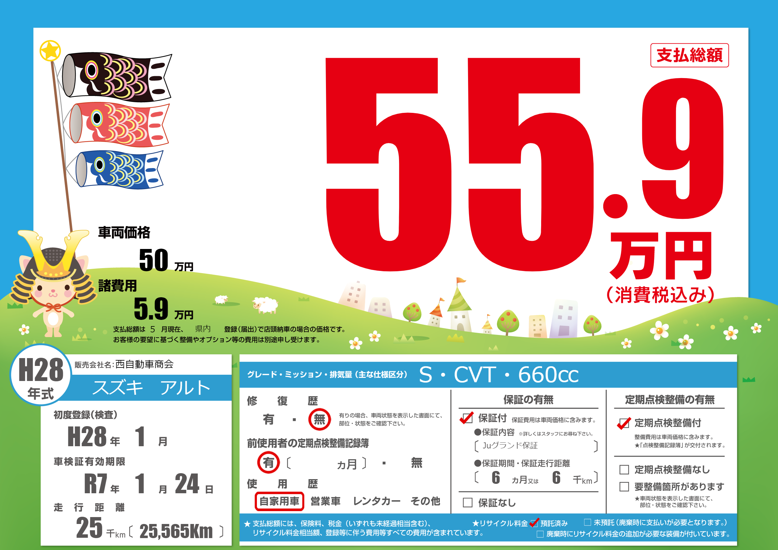 | 車名 | スズキ アルト | グレード ミッション 排気量 |