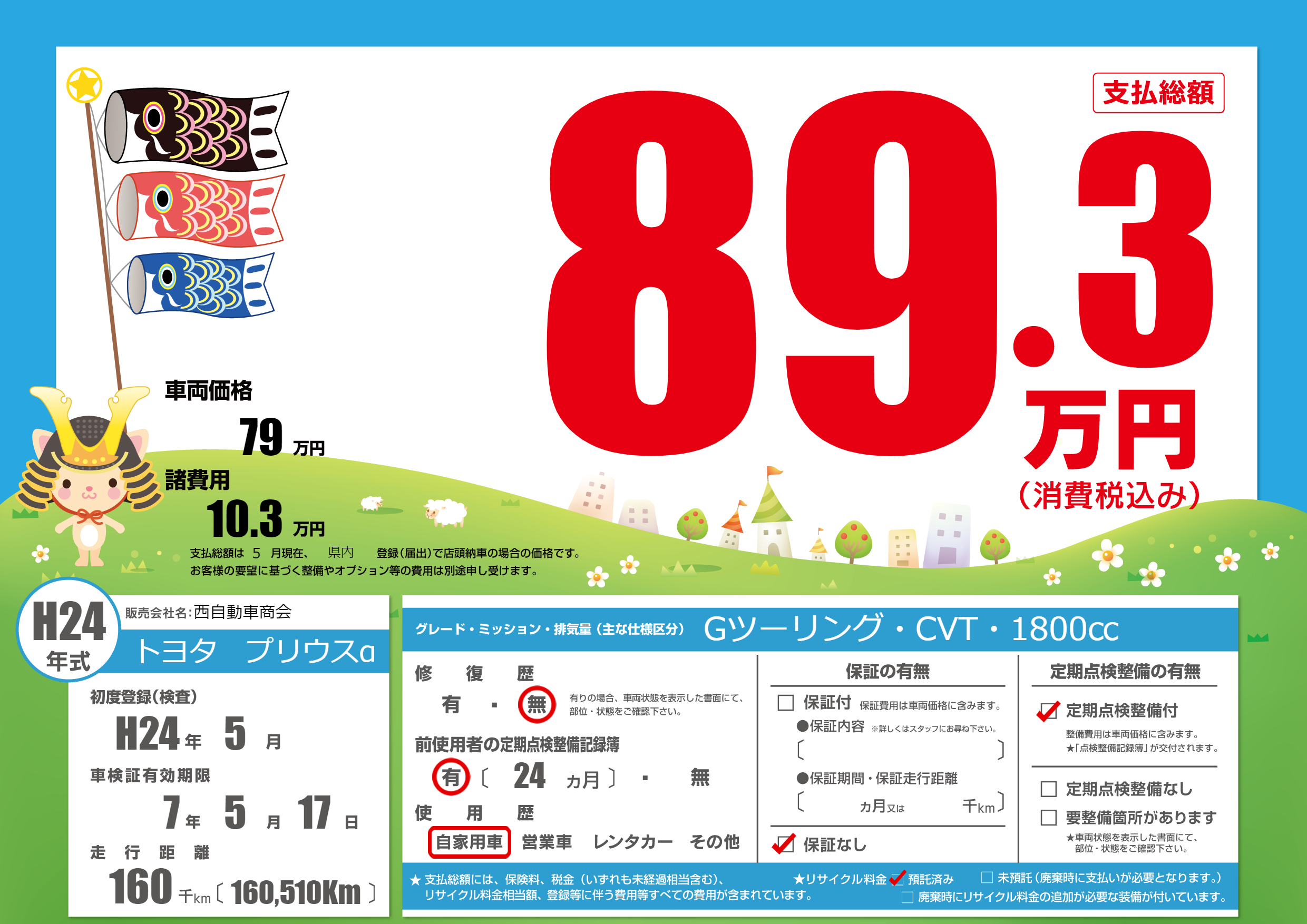 | 車名 | トヨタ プリウスα | グレード ミッション 排気量 |