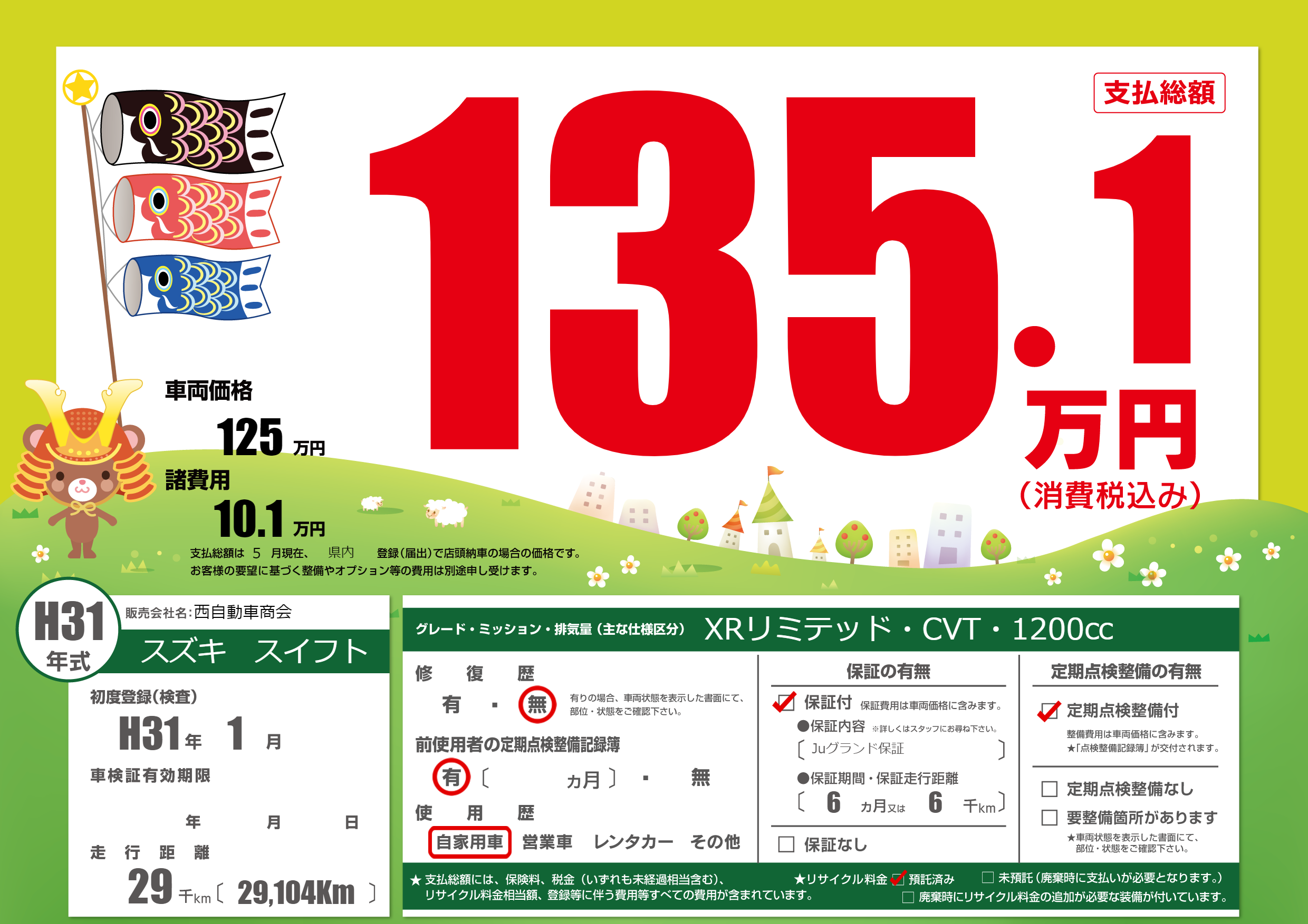 保証付き 保証内容(Juグランド保証) 6ヶ月または6千km |