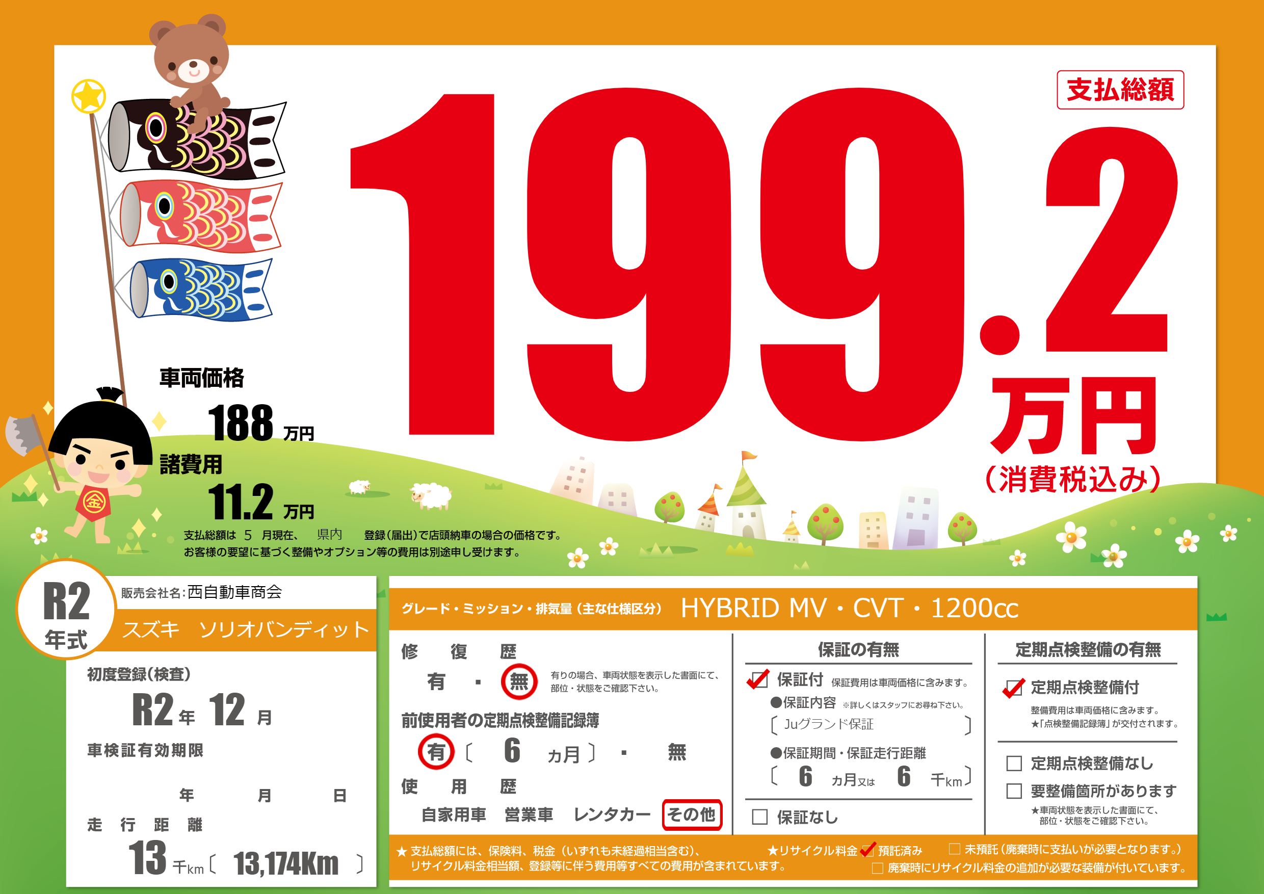 保証付き 保証内容(Juグランド保証) 6ヶ月または6千km |