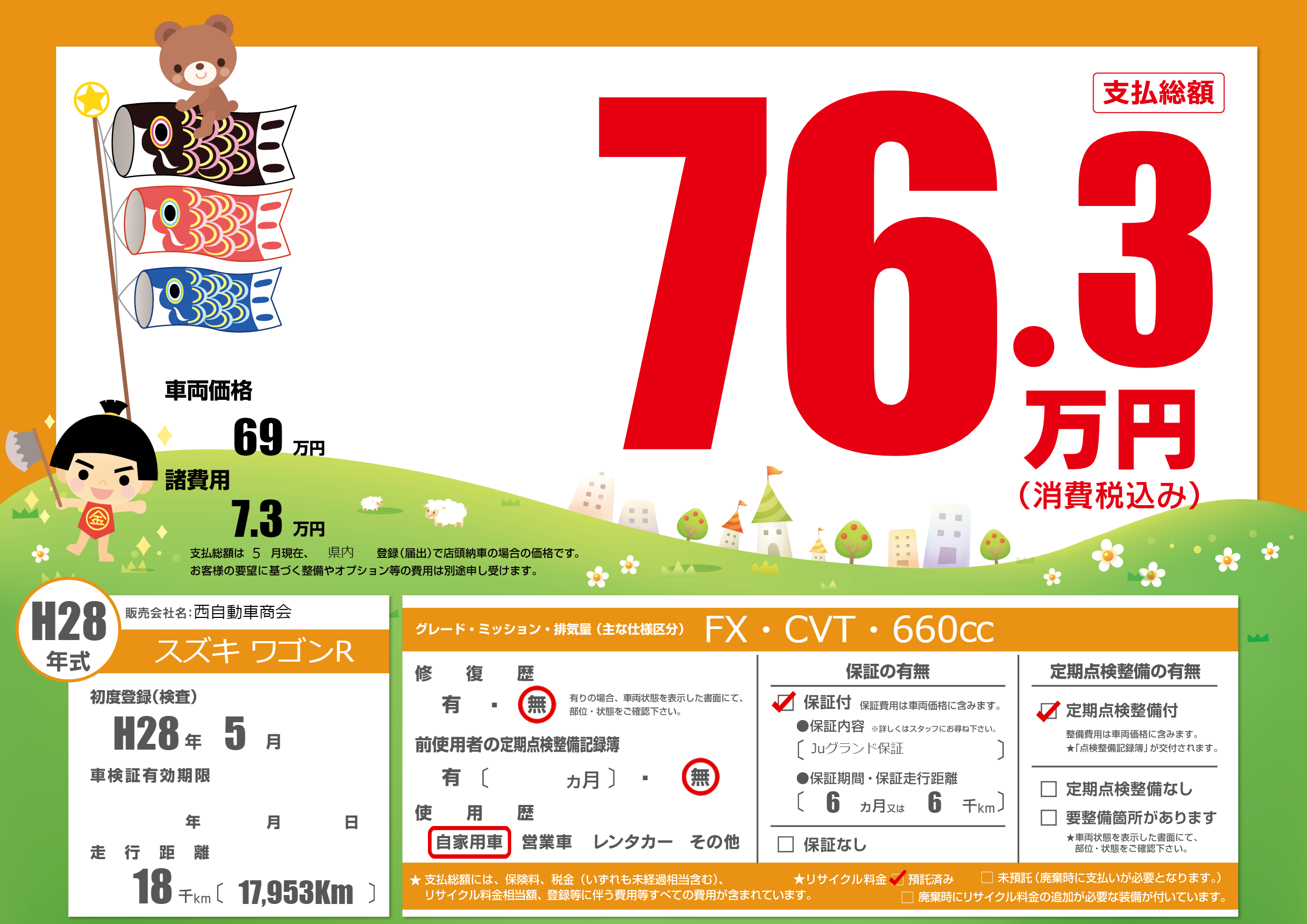 保証内容(Juグランド保証) 6ヶ月または6千km
