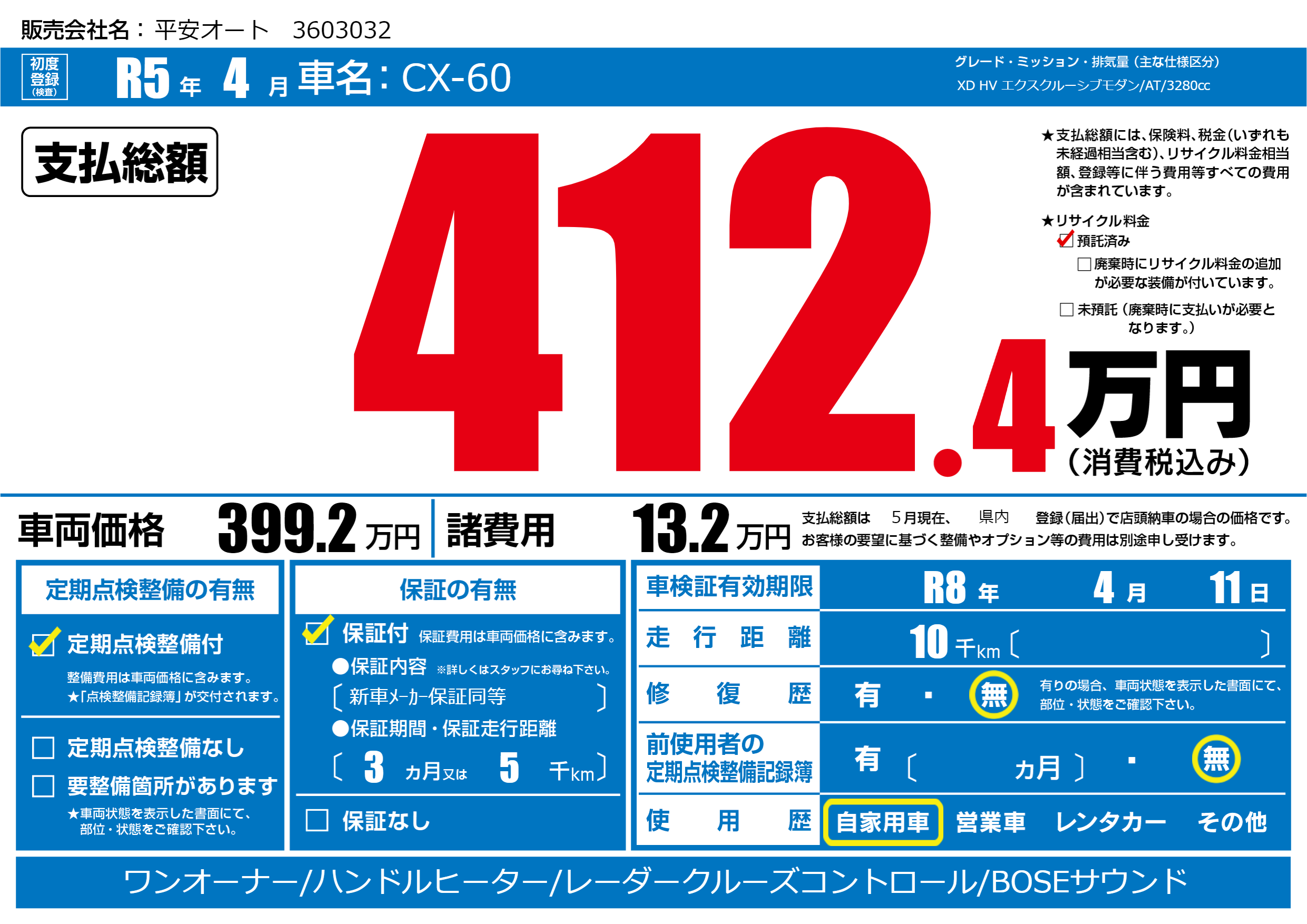 | 定期点検整備 | 定期点検整備あり | ||