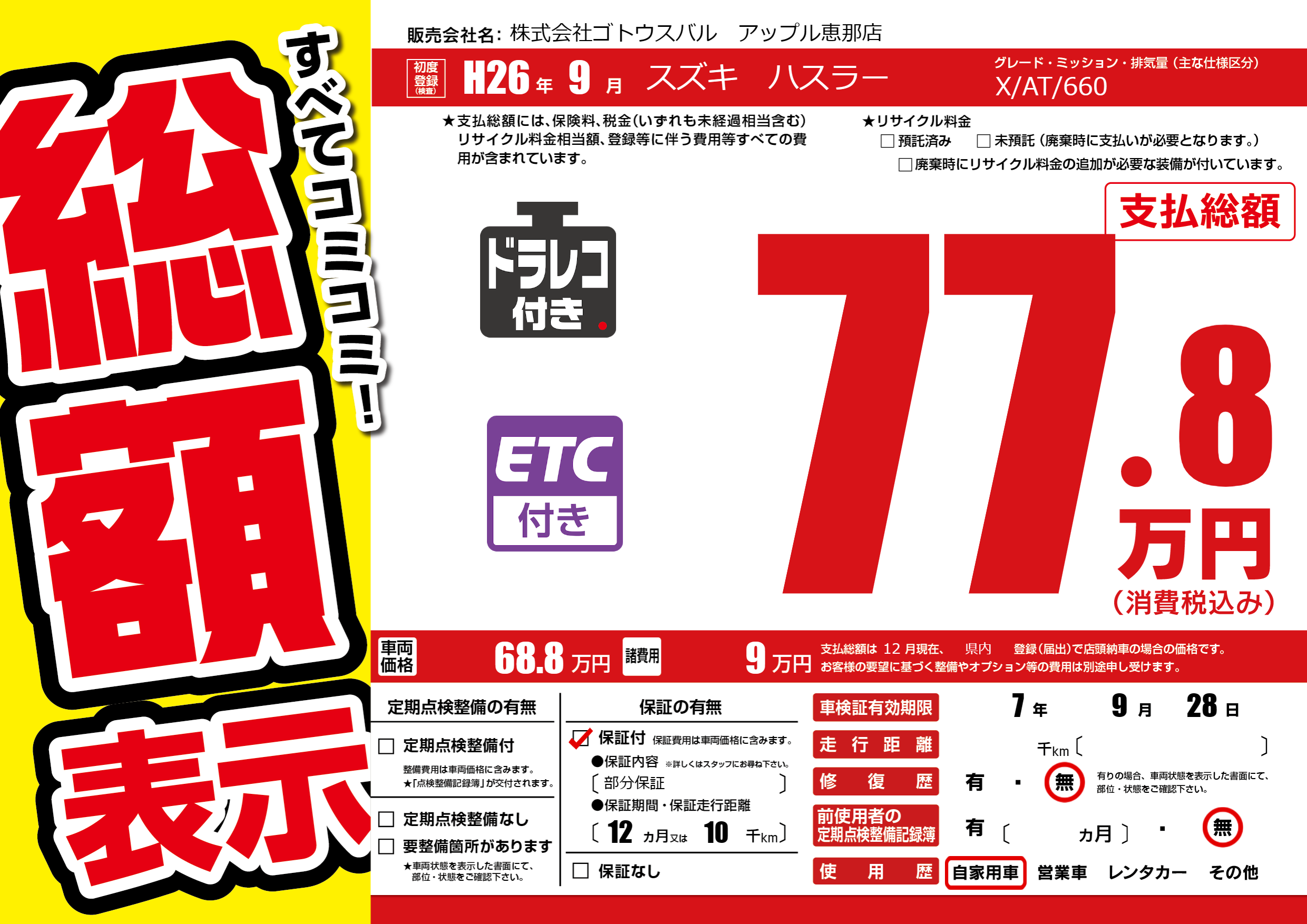 | 車検制限 | 7年 9月 28日 | ||