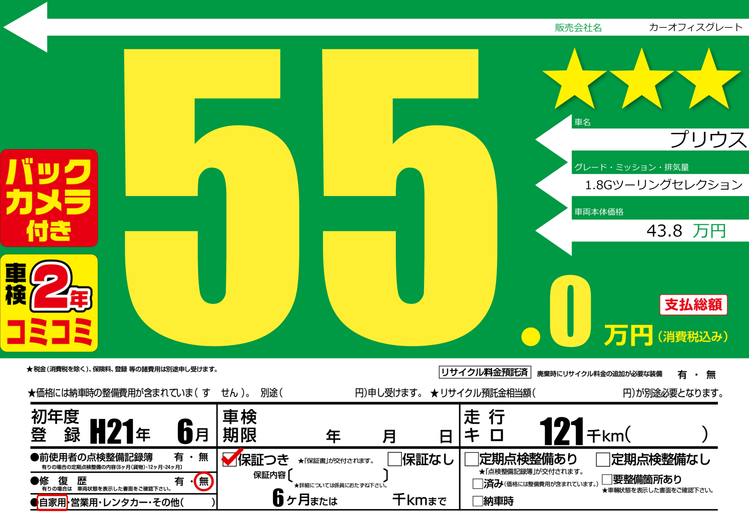 | 車名 | プリウス | グレード ミッション 排気量 |