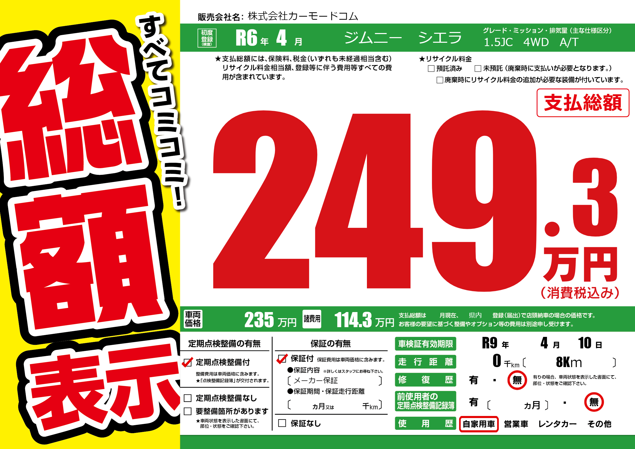 | 車名 | ジムニー シエラ | グレード ミッション 排気量 |
