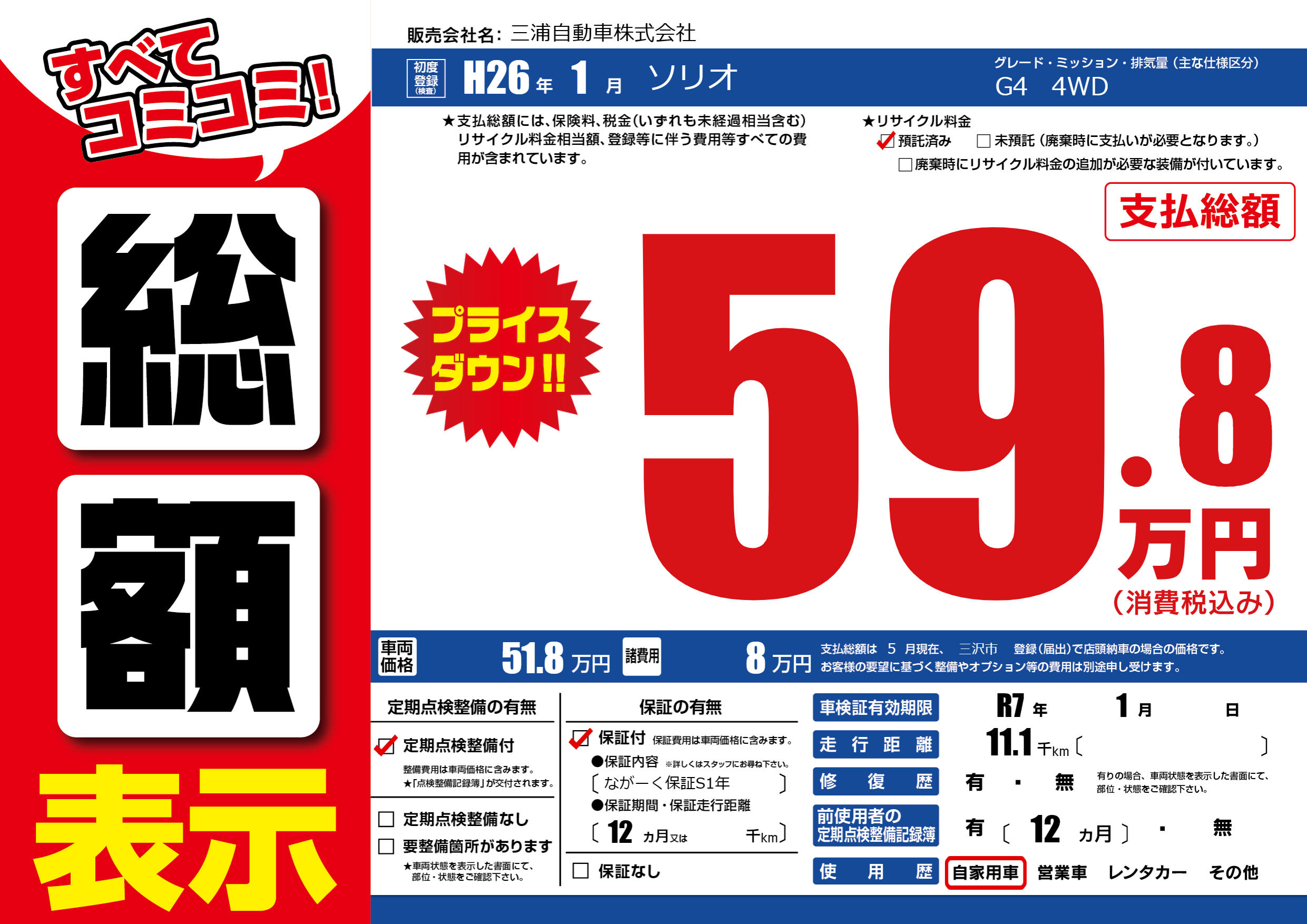| 車名 | ソリオ | グレード ミッション 排気量 |