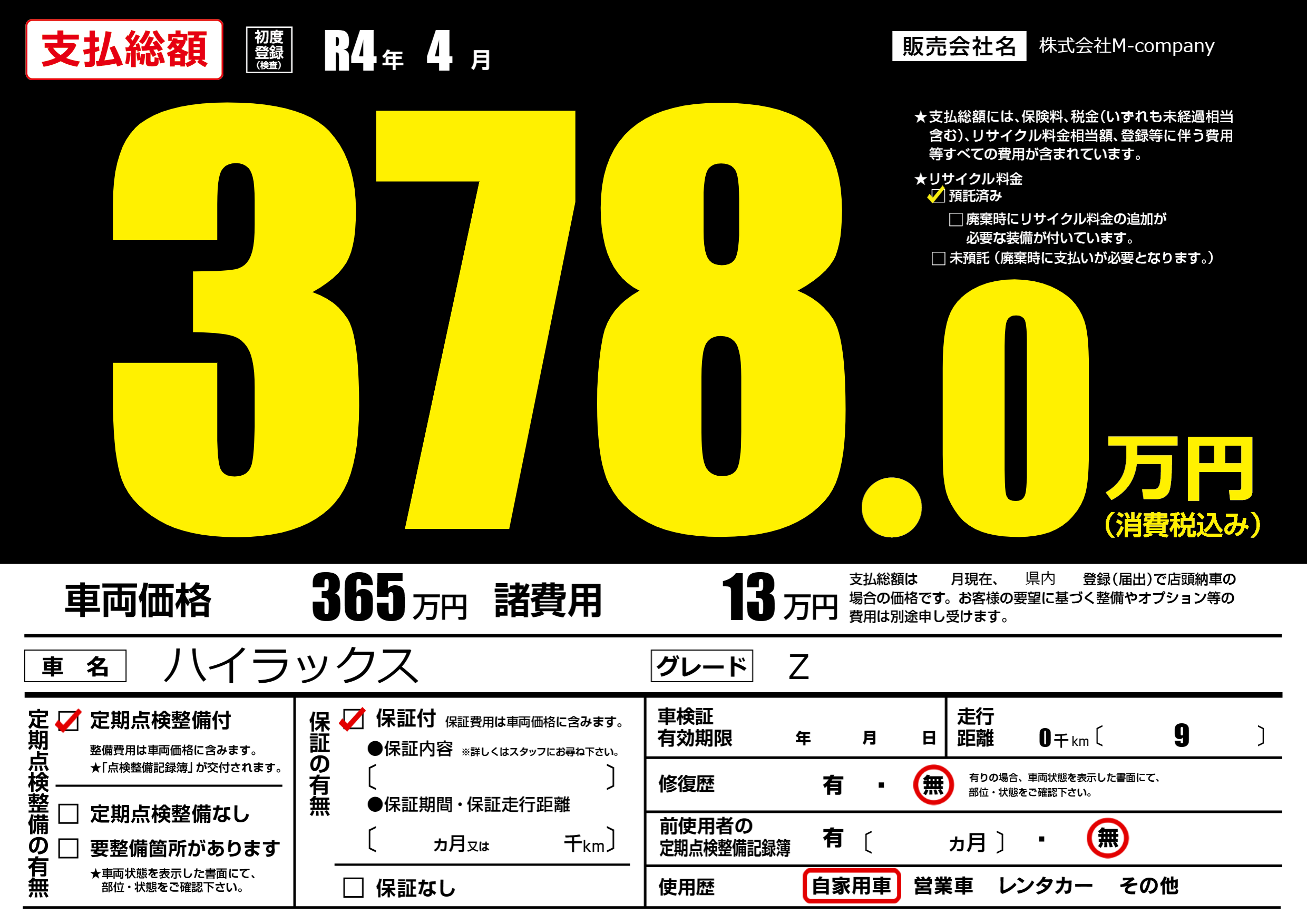 | 走行キロ | - | 初年度登録 | R4年4月 |