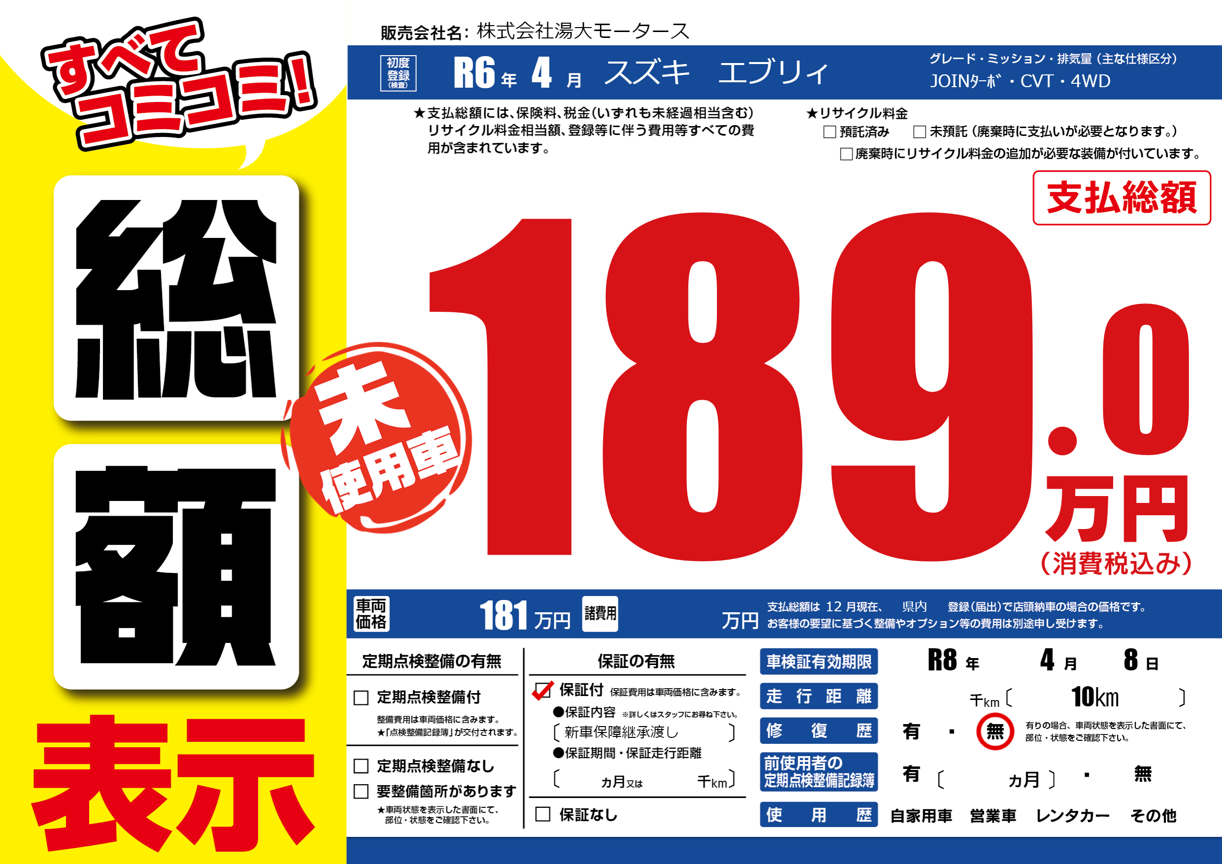 | 車名 | スズキ エブリィ | グレード ミッション 排気量 |