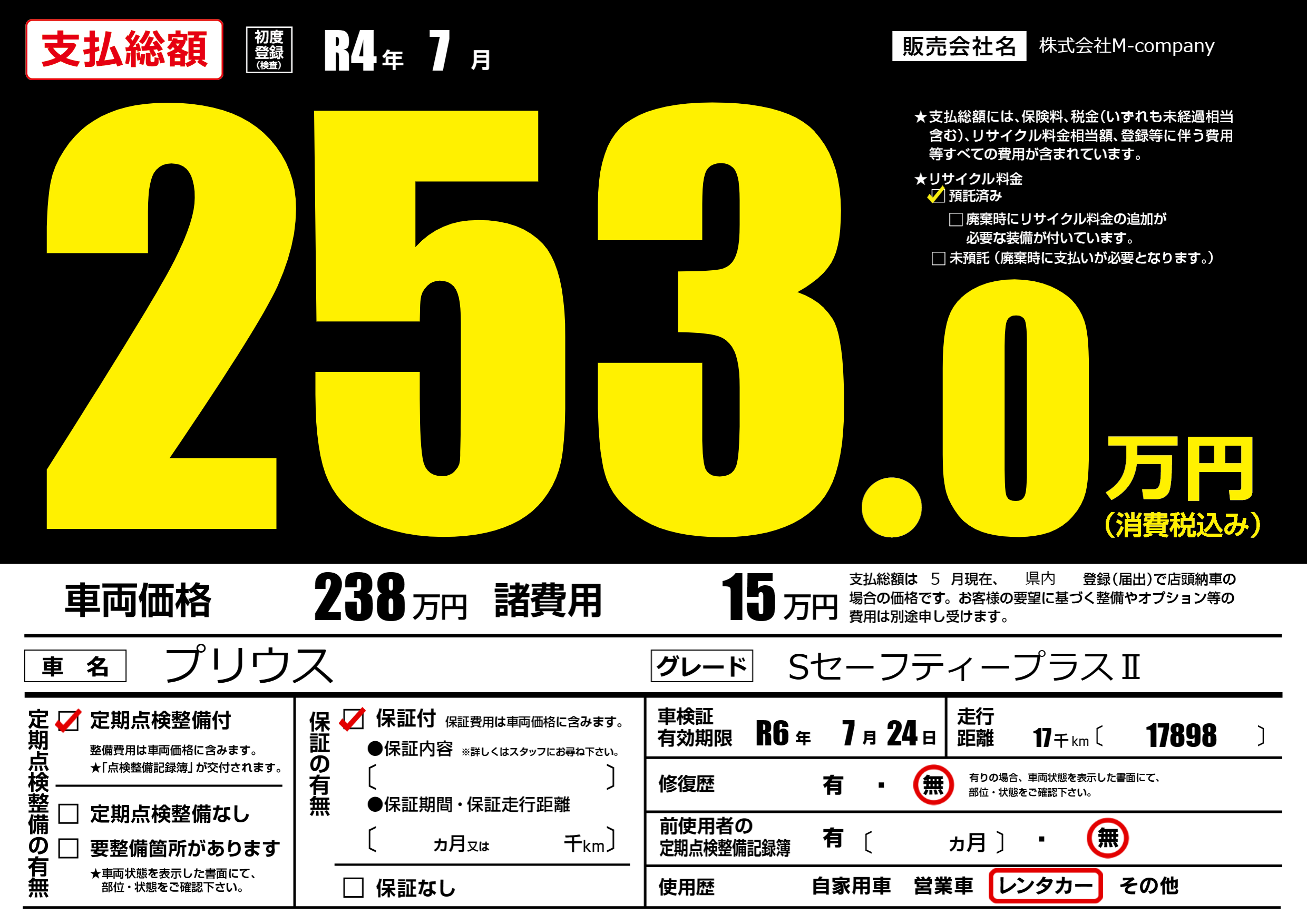 なし | 車検制限 | R6年7月24月 |