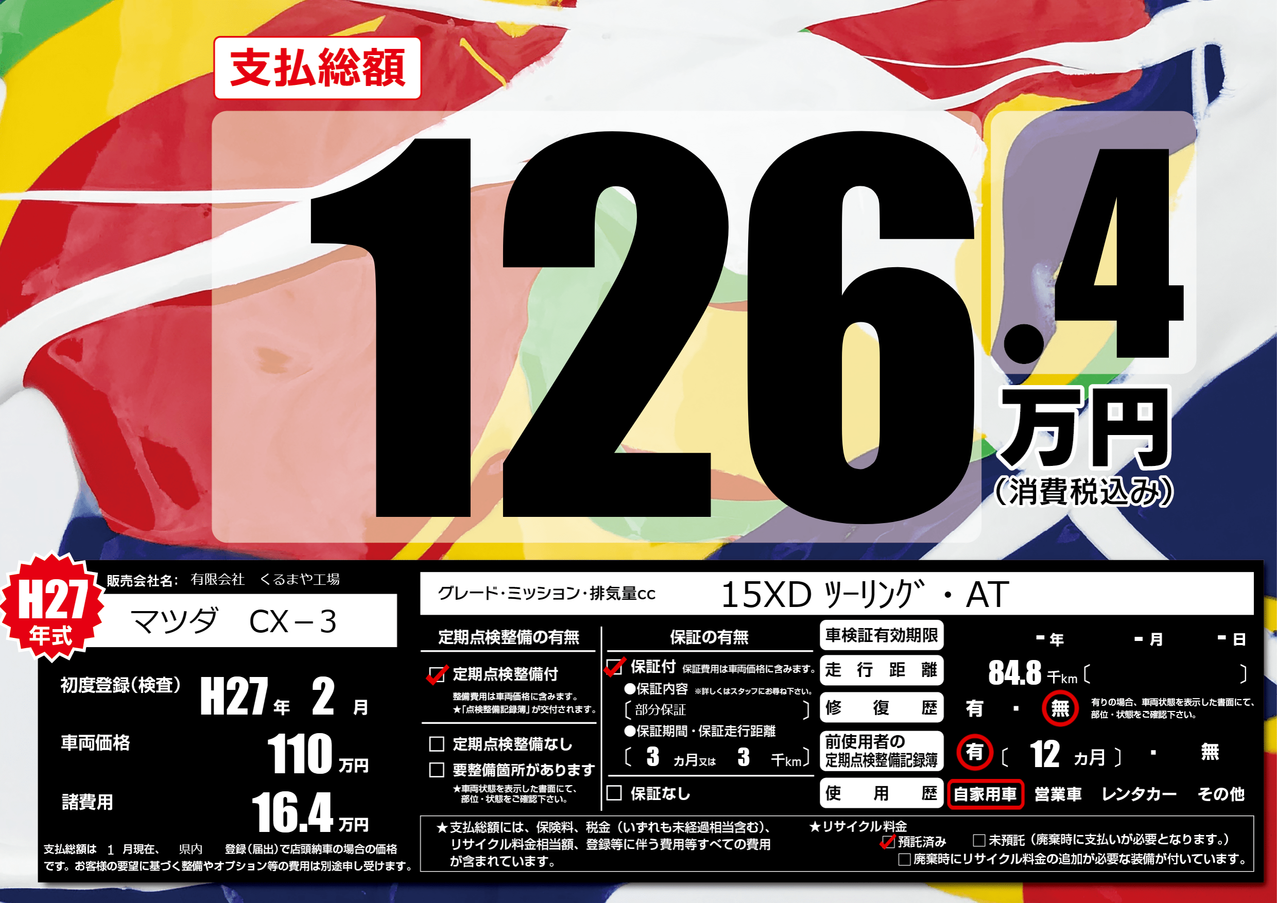 | 車名 | マツダ CX-3 | グレード ミッション 排気量 |