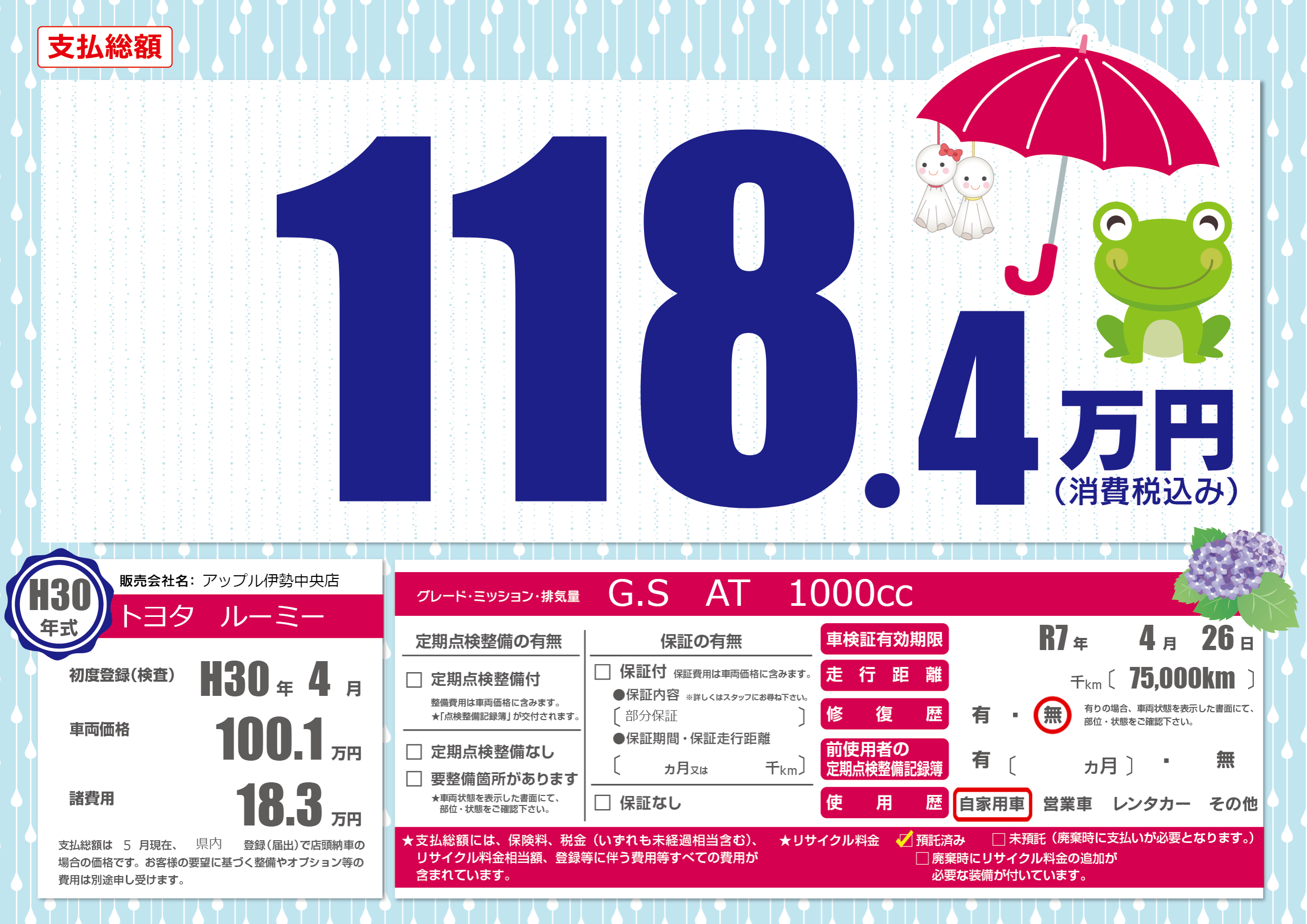 なし | 車検制限 | R7年4月26月 |