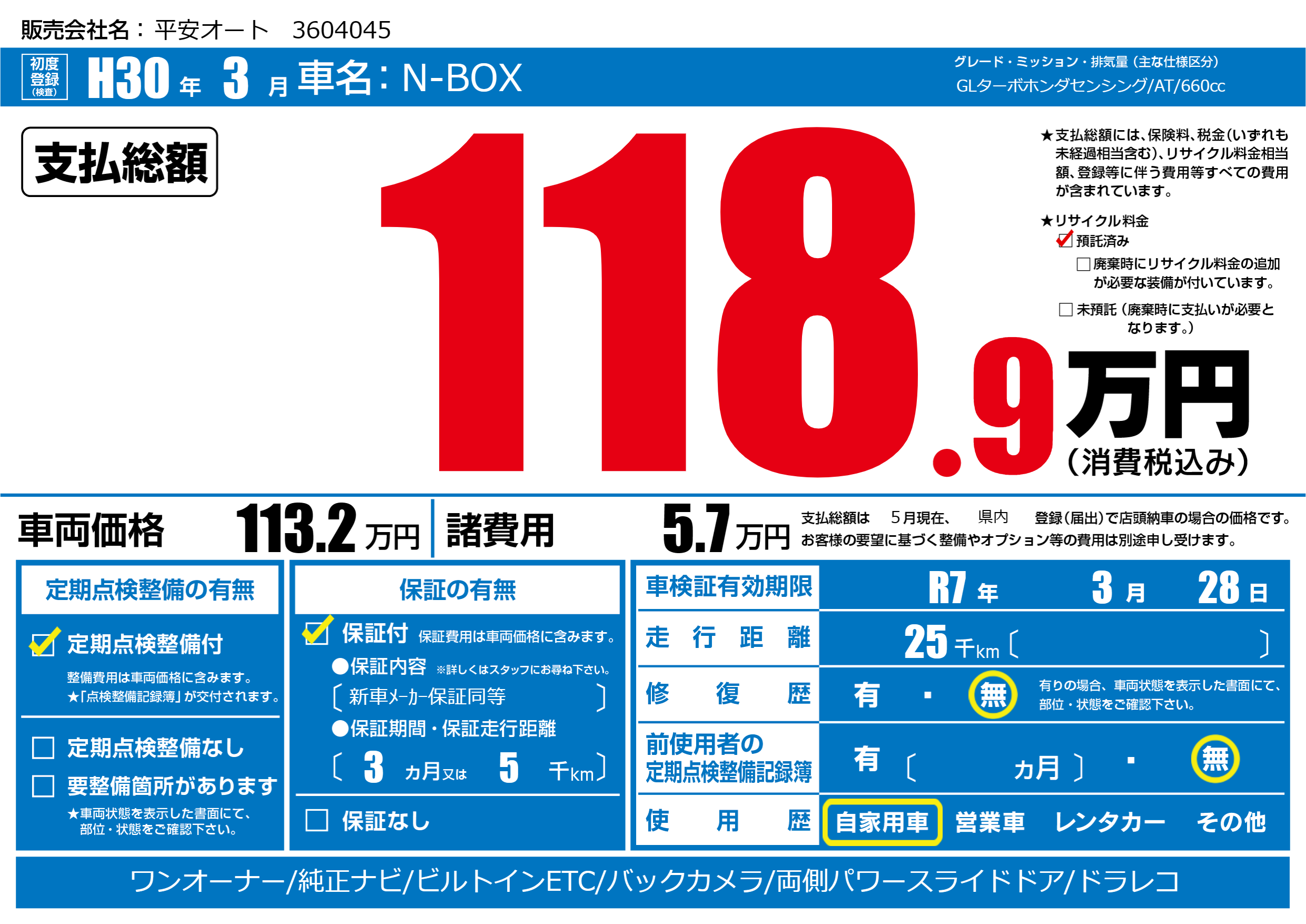 保証内容(新車メーカー保証同等) 3ヶ月または5千km